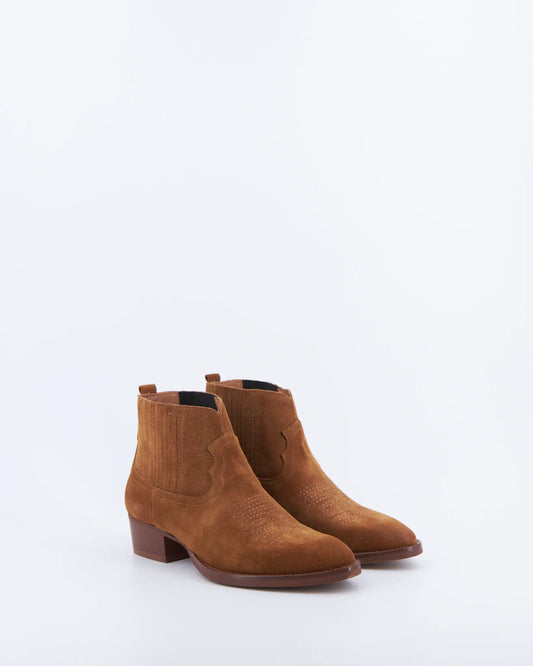 Un intramontabile stivaletto texano donna in morbida pelle scamosciata, pensato per aggiungere un tocco glamour...