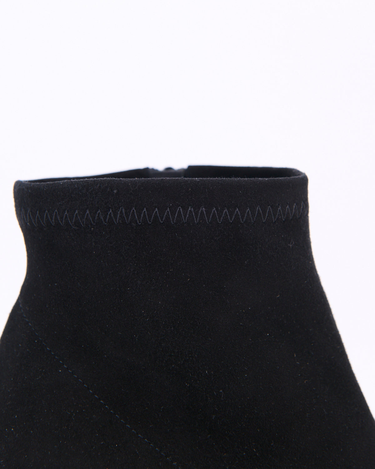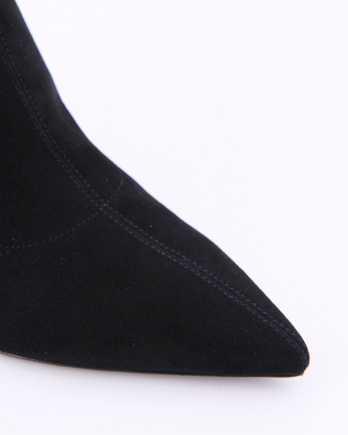 Morbidezza e confort fanno da volano a questo intramontabile modello dalla silhouette a punta diventato ormai un must-have che da ad ogni look una verve femminile ed elegante. Altezza tacco: 8cm Altezza gambale: 10,5cm Composizione : Pelle velour Calzata: Regolare Fatto a mano in Italia |