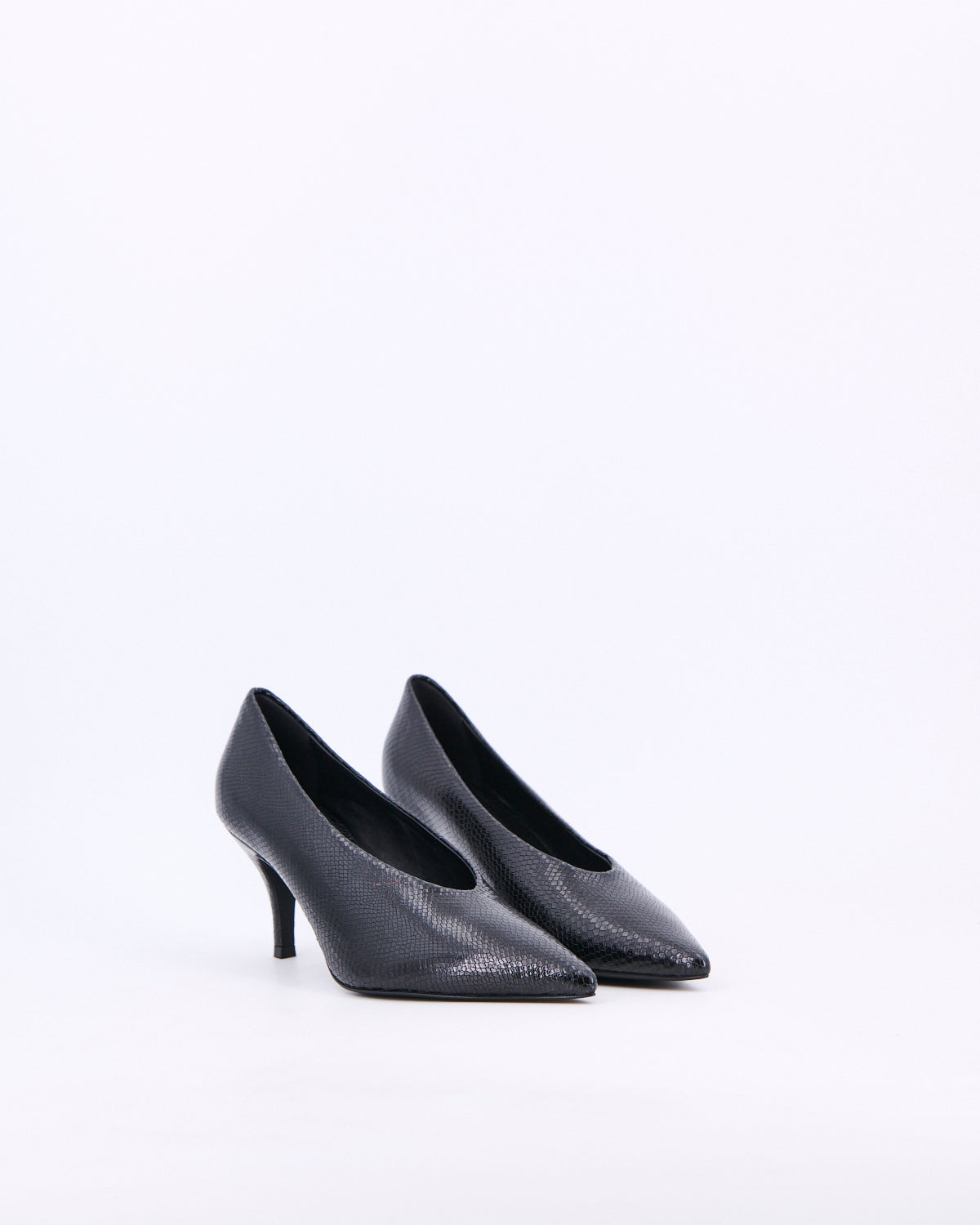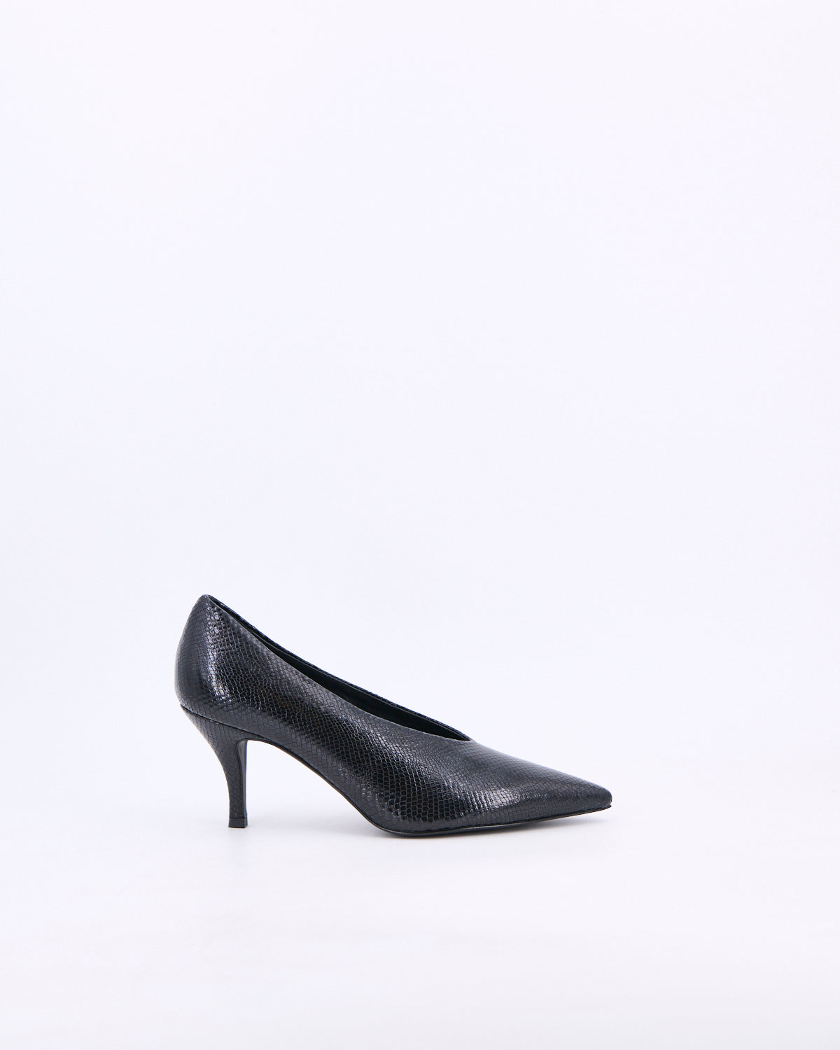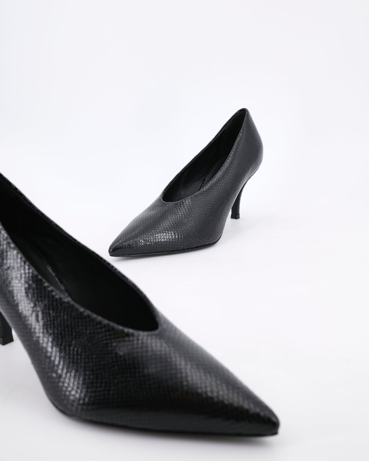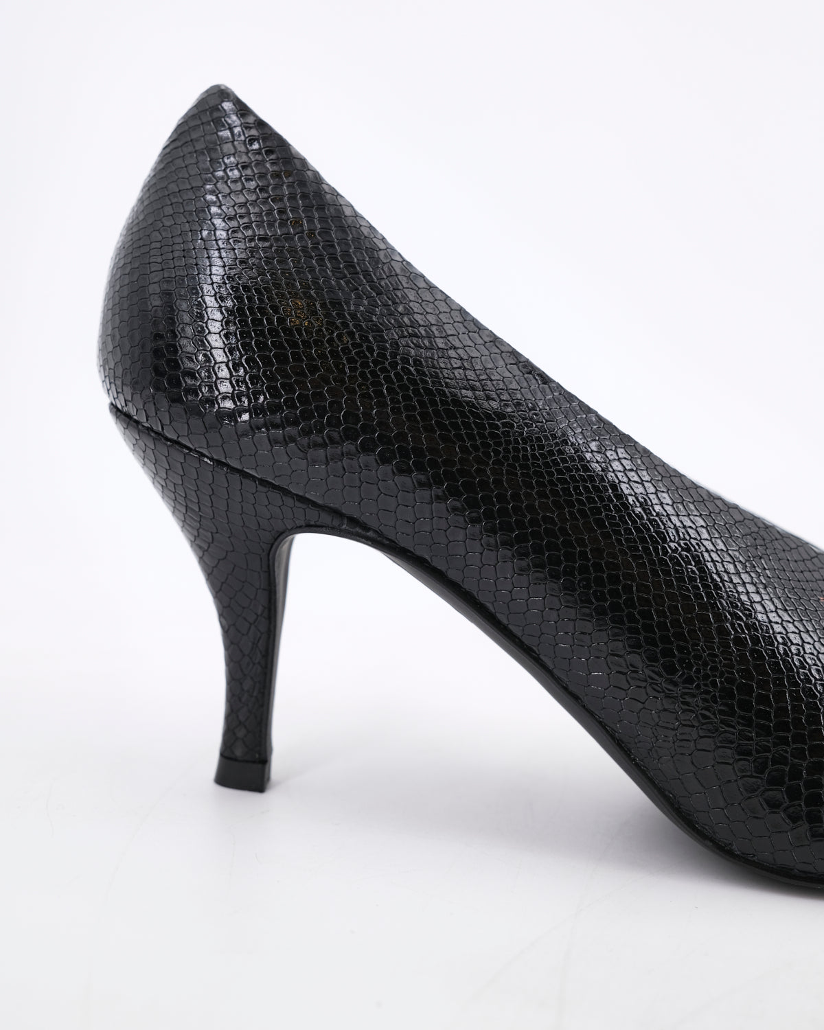 Di ispirazione anni 50 per questo décolleté dalla silhoutte a punta impreziosito dal pellame stampato effetto pitone ideale per rendere glamour e femminile ogni tipo di look . Altezza tacco:8cm Composizione: Pelle stampata effetto pitone Fatto a mano in Italia |