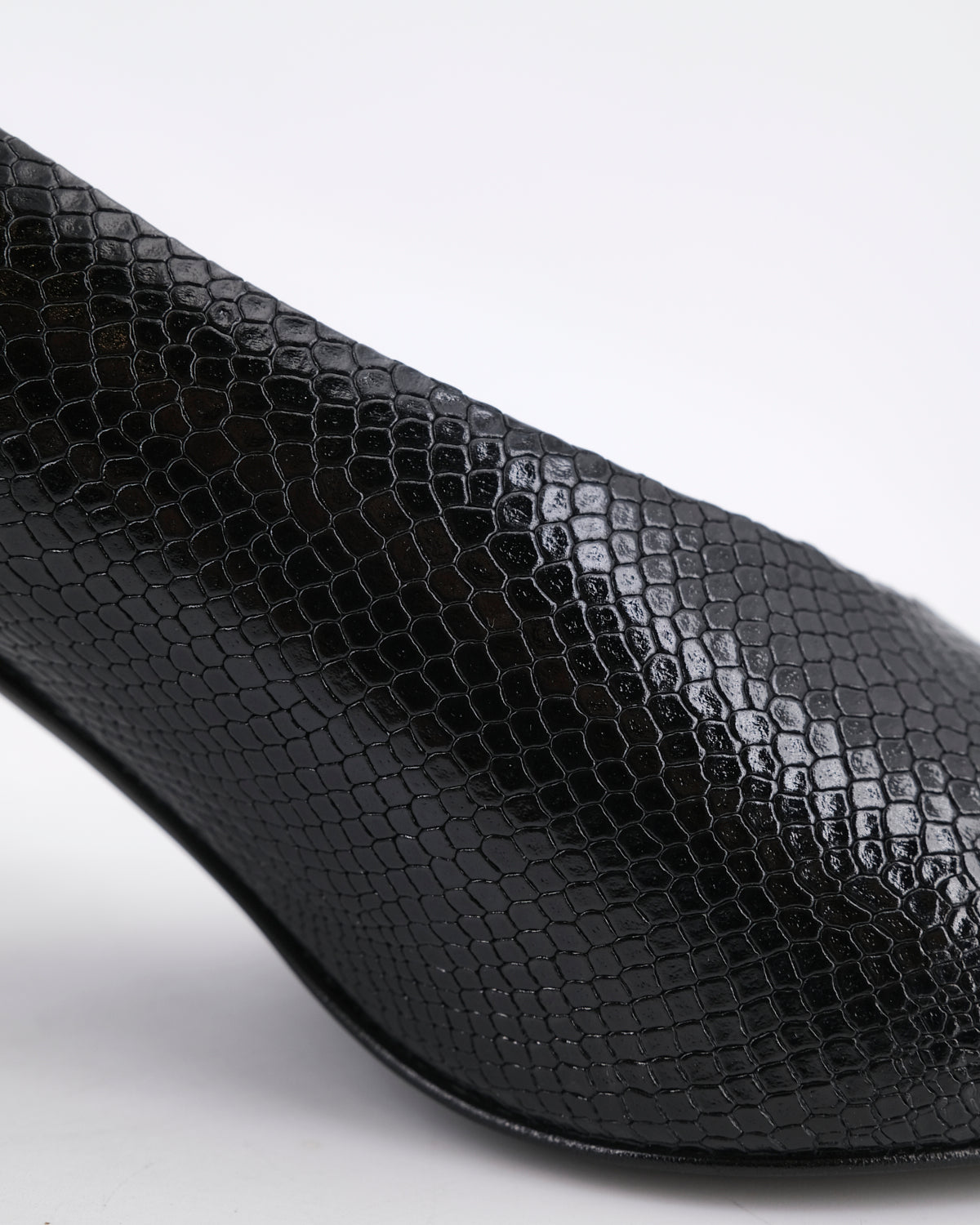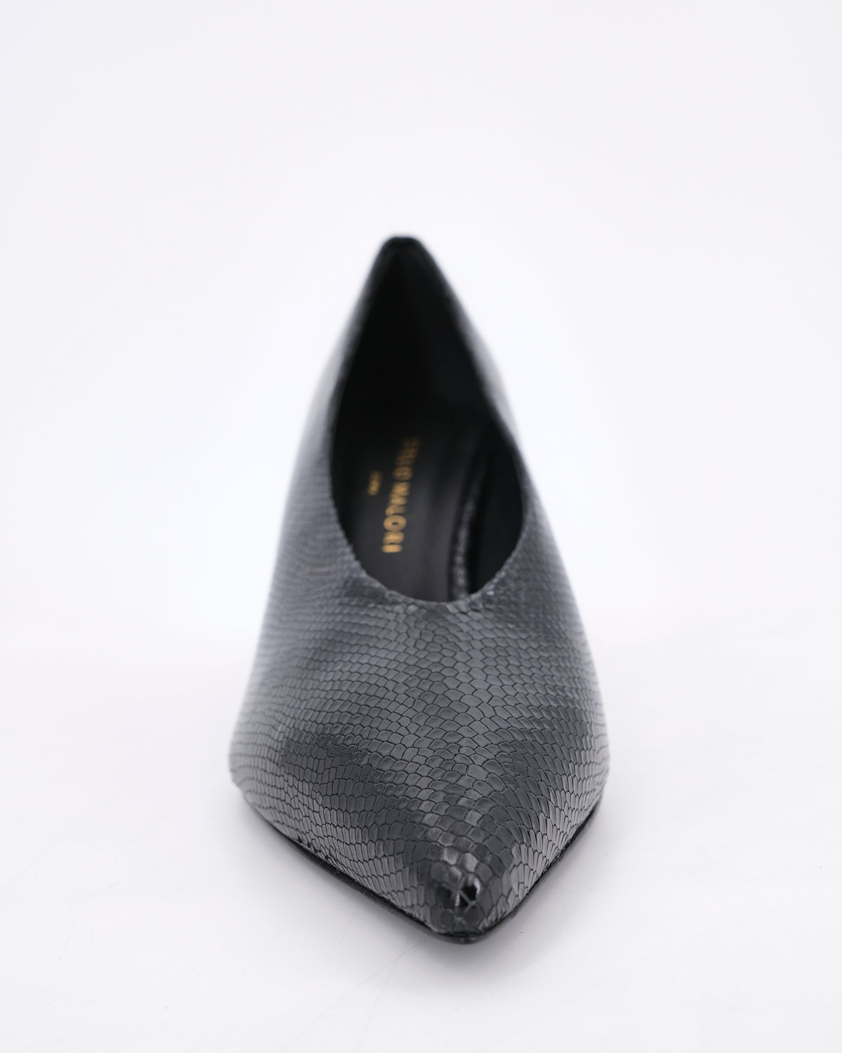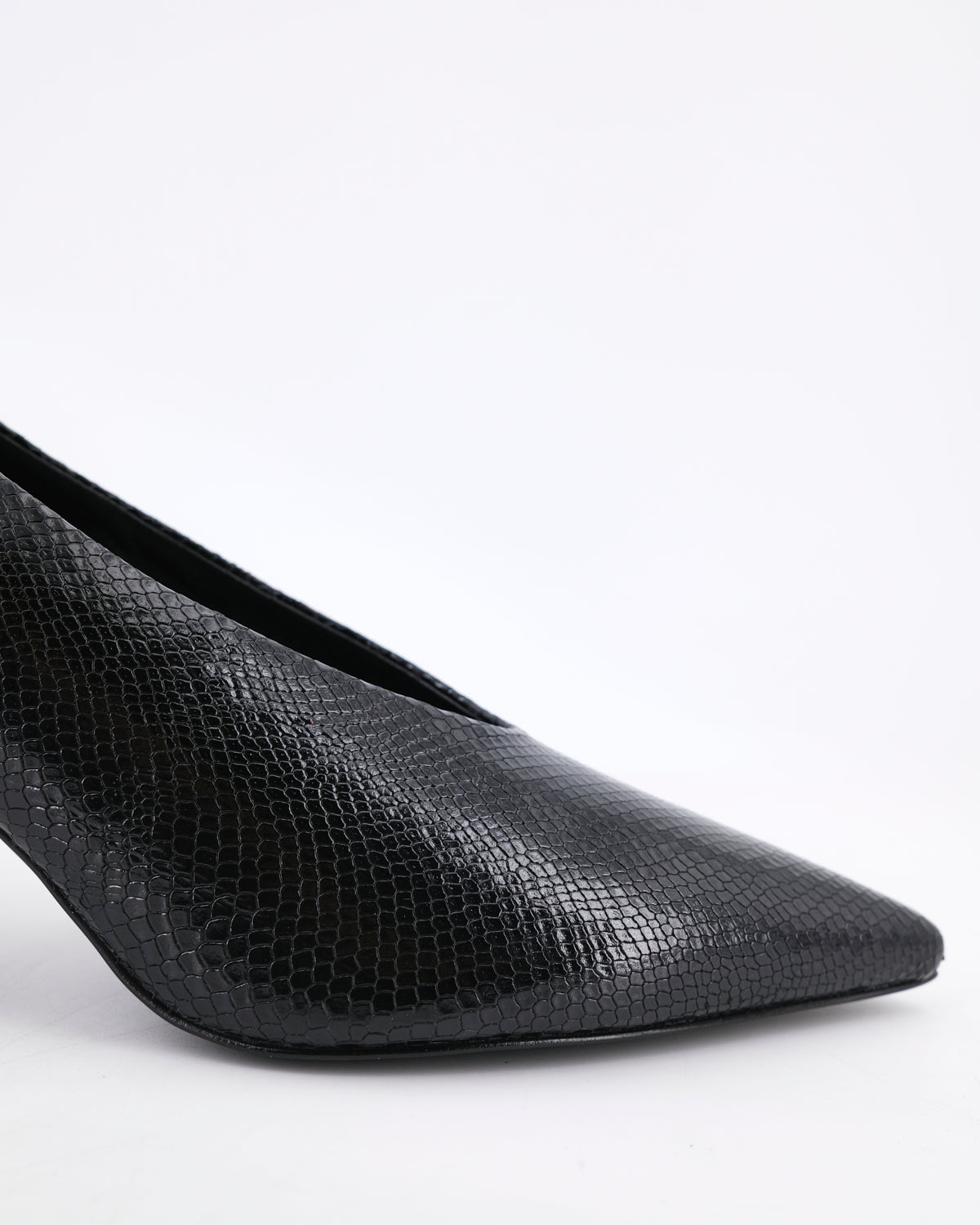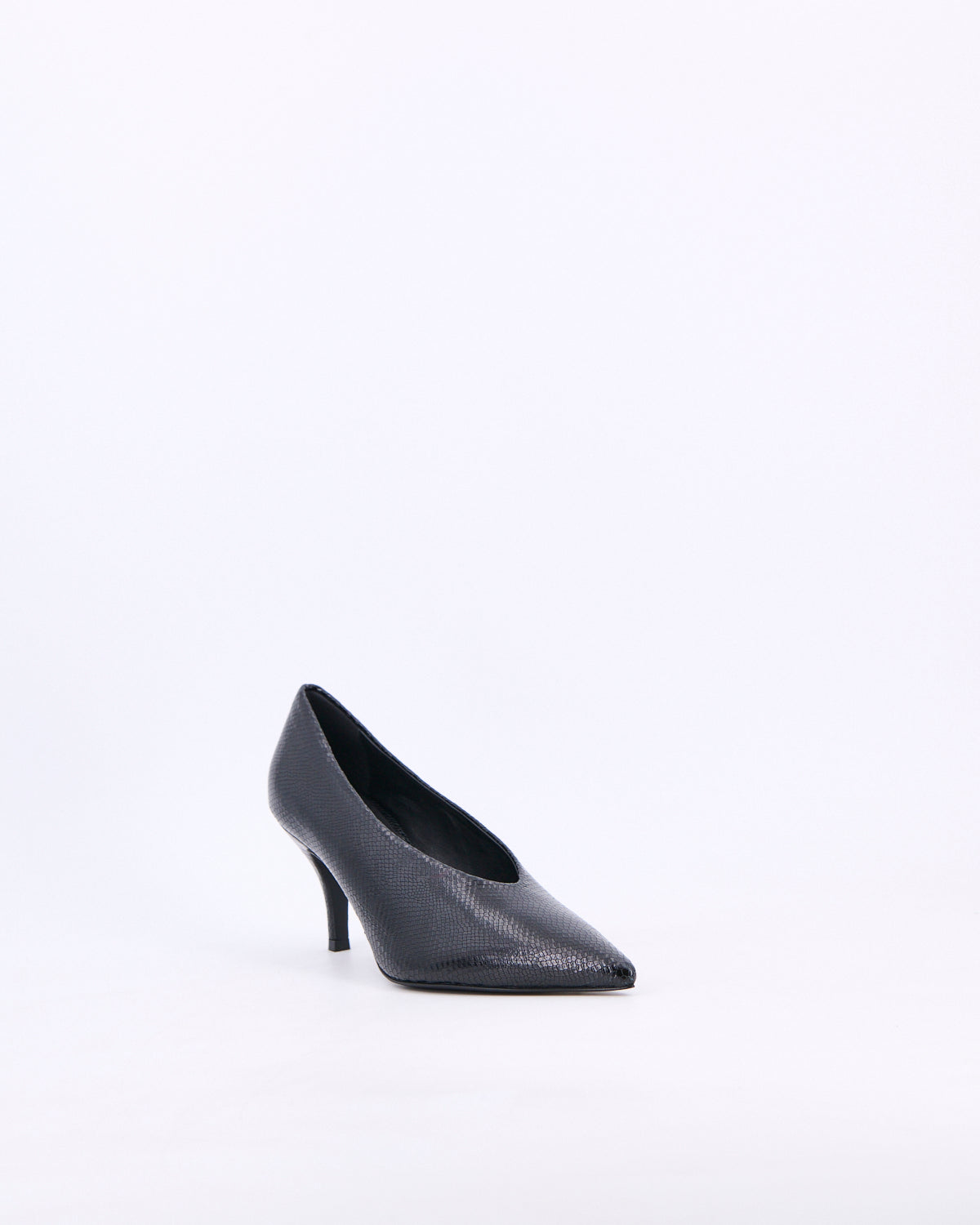 Di ispirazione anni 50 per questo décolleté dalla silhoutte a punta impreziosito dal pellame stampato effetto pitone ideale per rendere glamour e femminile ogni tipo di look . Altezza tacco:8cm Composizione: Pelle stampata effetto pitone Fatto a mano in Italia |