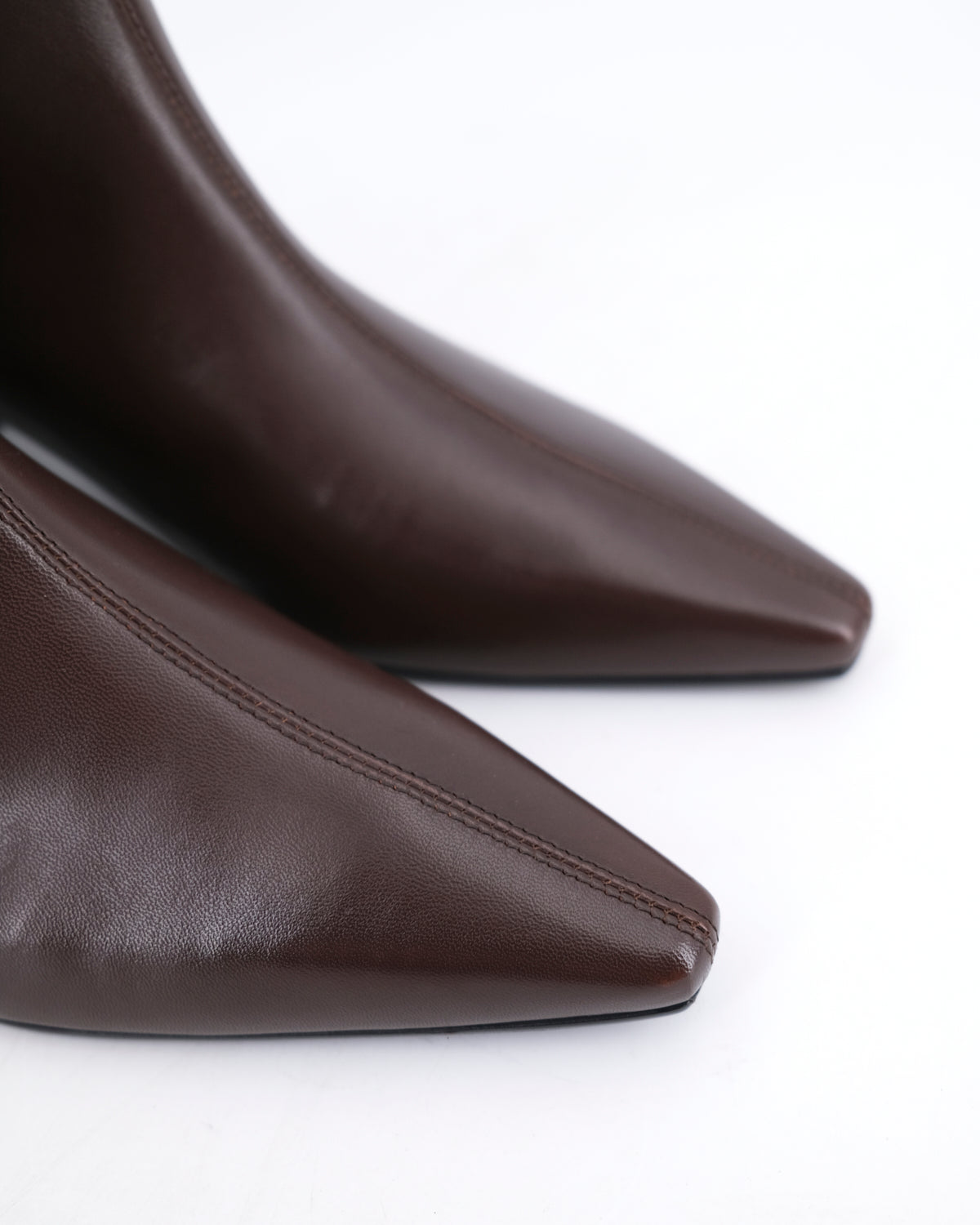 Mix di stili e di ispirazioni per questo stivaletto dal design moderno e di tendenza impreziosito da un piccolaV sul retro per dare slancio alla gamba. Ideale per essere indossato in ogni momento della giornata. Altezza tacco: 4,5cm Altezza gambale: 17cm Composizione: Pelle Calzata:Regolare Fatto a mano in Italia |