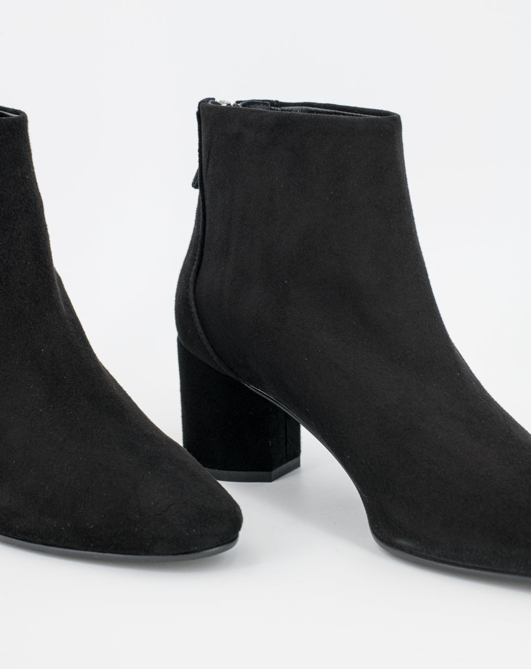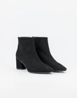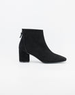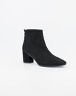Realizzato in morbida pelle scamosciata, questo stivaletto dal design essenziale ed elegante ideato con una tacco semi cilindrico, presenta una zip posteriore che rende la calzata avvolgente e confortevole.