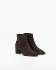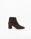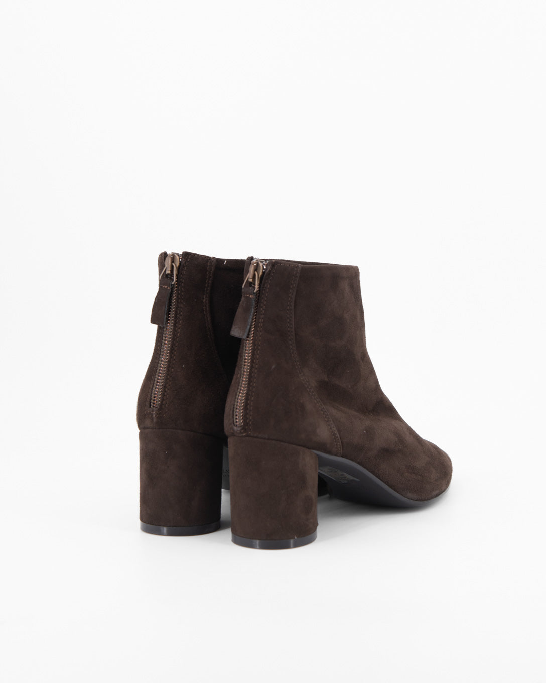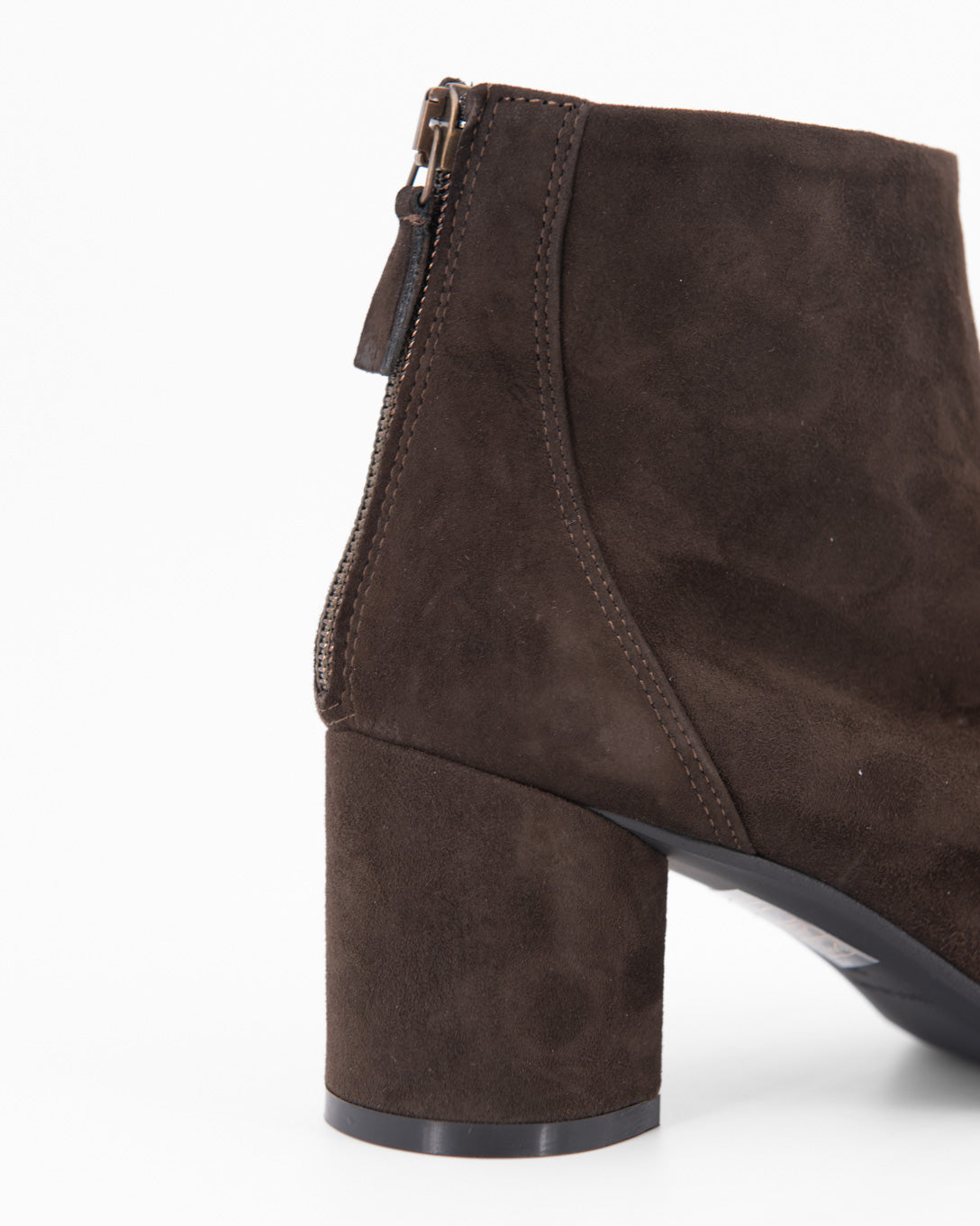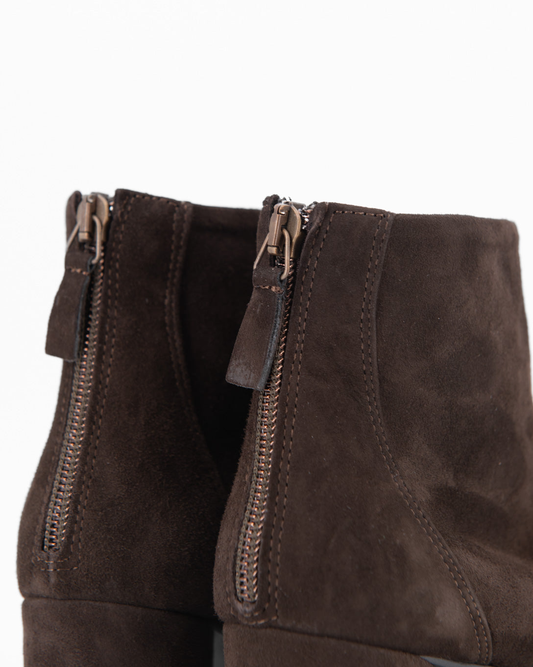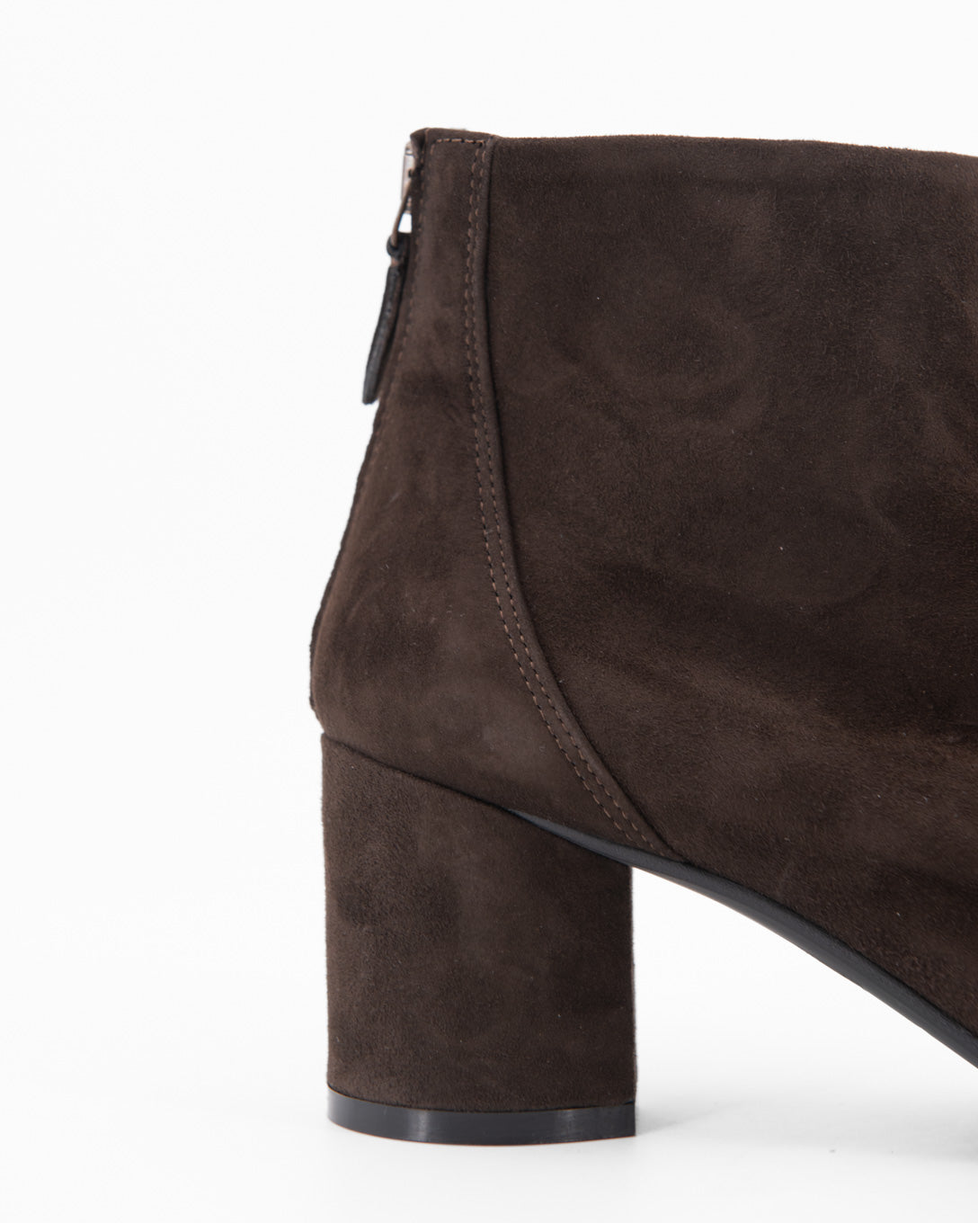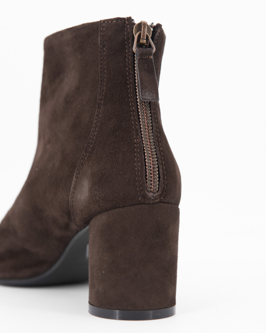 Realizzato in morbida pelle scamosciata, questo stivaletto dal design essenziale ed elegante ideato con una tacco semi cilindrico, presenta una zip posteriore che rende la calzata avvolgente e confortevole.