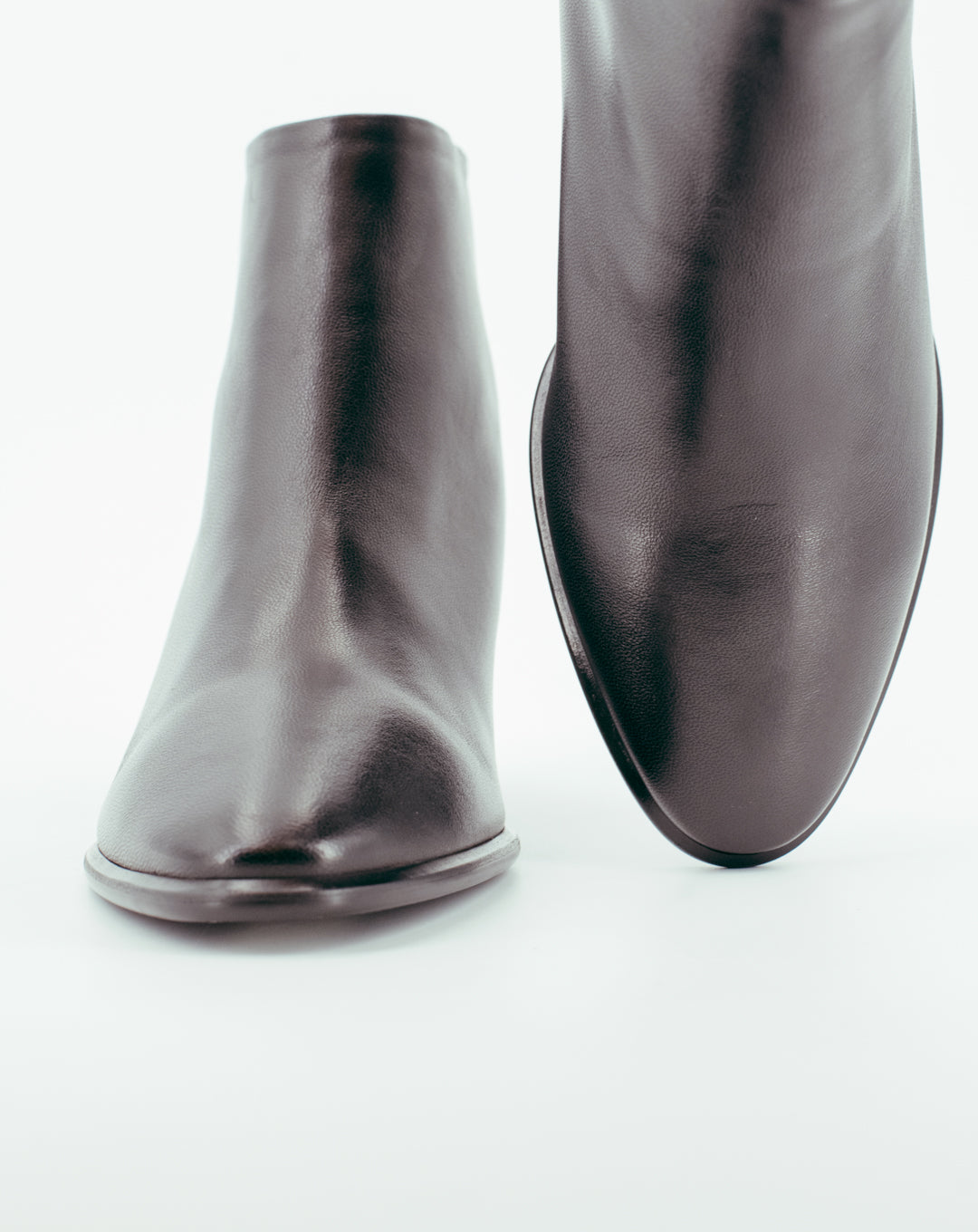 Realizzato in morbida pelle, questo stivaletto presenta un design essenziale e raffinato, pensato con una zip posteriore per consentire una calzata avvolgente e confortevole.