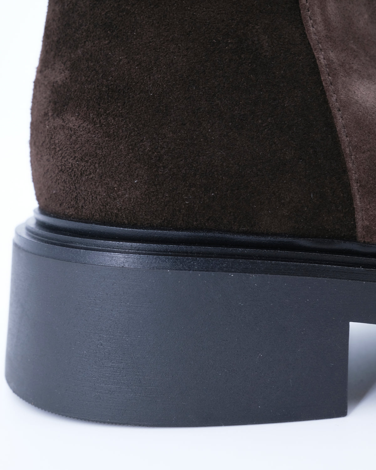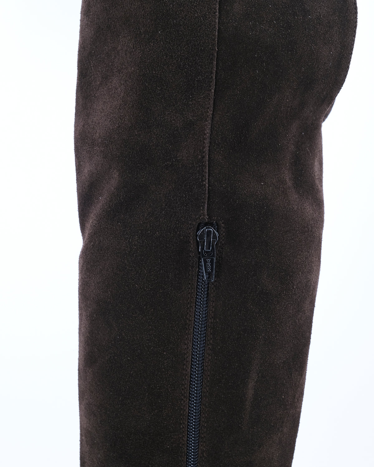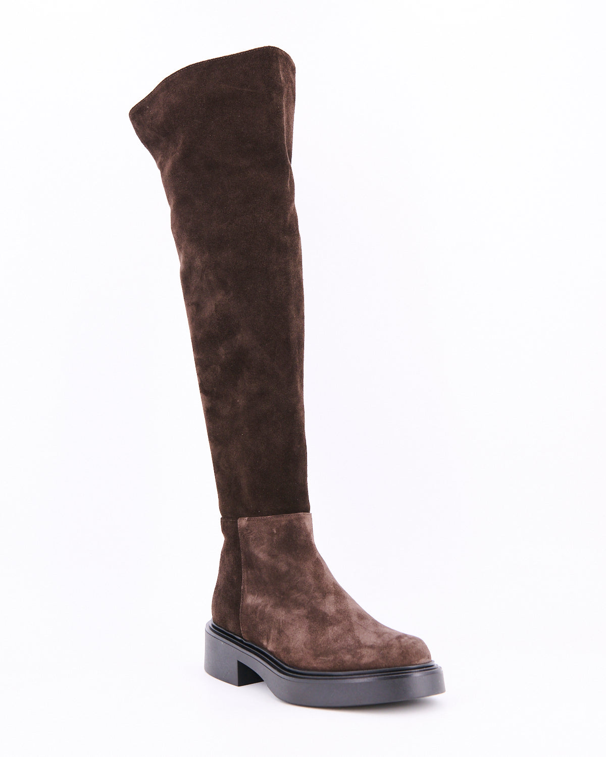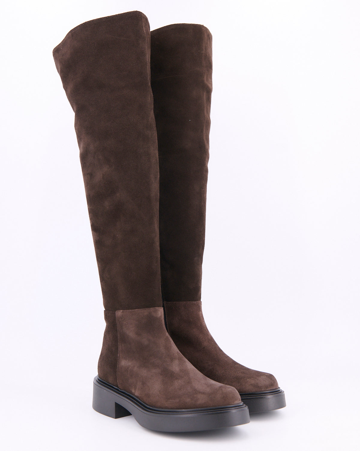 Di ispirazione urban per questo stivale modello cuissard realizzato in morbido camoscio con piccola zip laterale per consentire una calzata avvolgente pensato per rendere femminili ed accattivanti le giornate più fredde. Altezza tacco:4cm plateau 2,5cm Altezza gambale:52cm Composizione. Pelle scamosciata calzata:Regolare Fatto a mano in Italia |