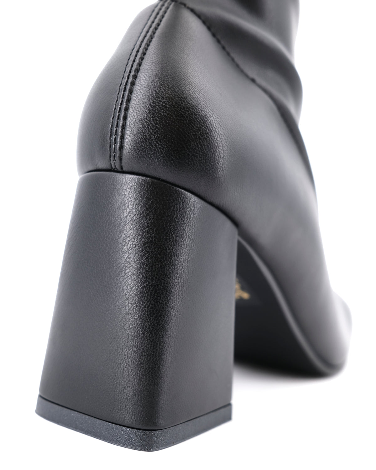 Mix di stili con uno sguardo agli anni 70 per questo stivale elasticizzato che si adatta perfettamente alla gamba valorizzando le linee e garantendo una calzata confortevole slanciando la silhouette ideale per essere indossato in qualsiasi momento della giornata. Altezza tacco: 8cm Altezza gambale: 39cm Composizione: Ecopelle stretch Fatto a mano in Italia |