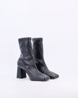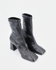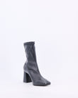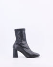 Un must-have contemporaneo lo stivaletto elasticizzato  dalla forma semi quadra e tacco geometrico di ispirazione anni 70 che avvolge la caviglia con eleganza e dona slancio alla silhouette , ideale per essere abbinato con ogni tipo di look.