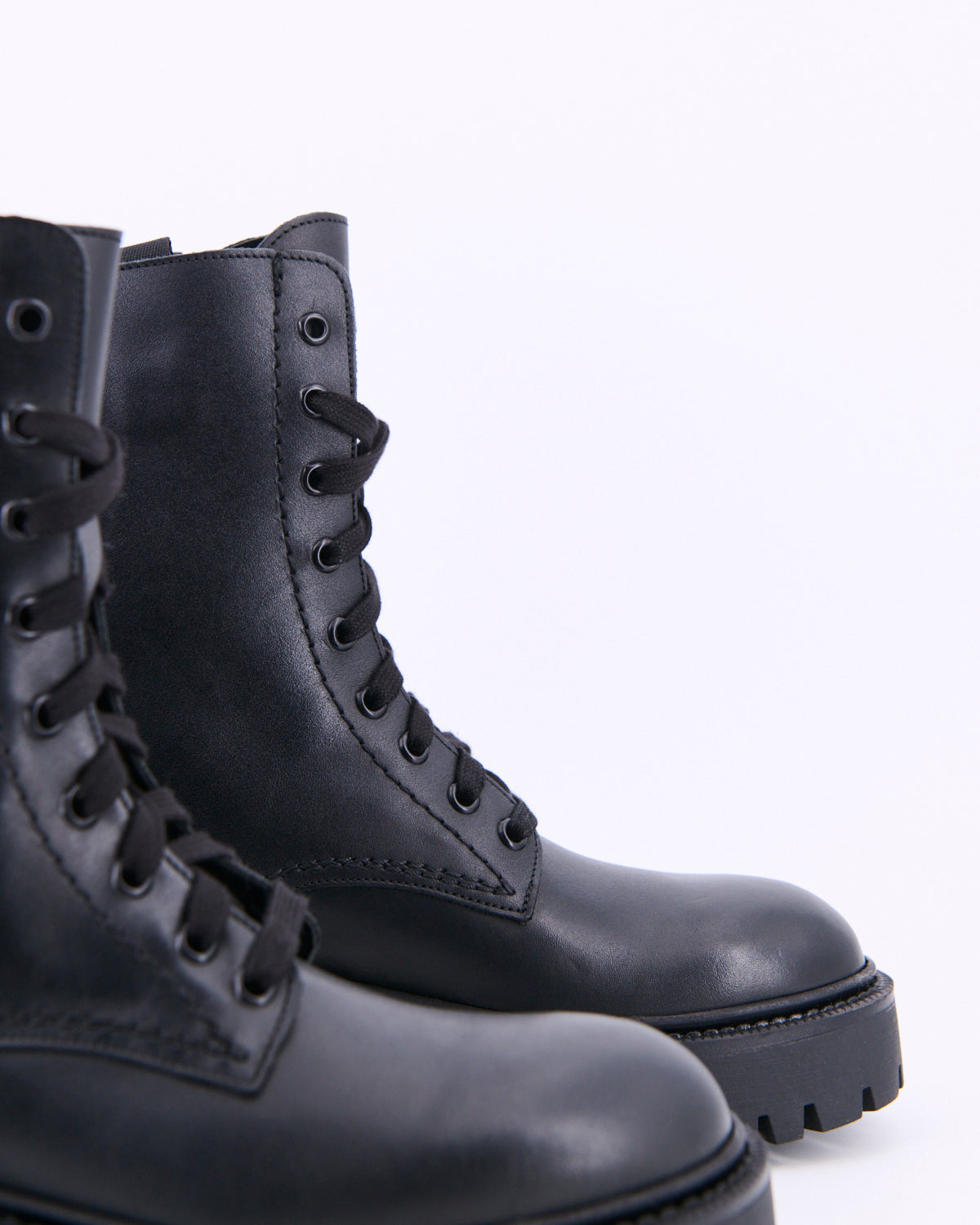 Stile urban street per questo stivaletto anfibio con zip posteriore che dona una calzata fasciante dando a questo intramontabile modello un allure femminile donando  grinta e personalità agli outfit più glamour.