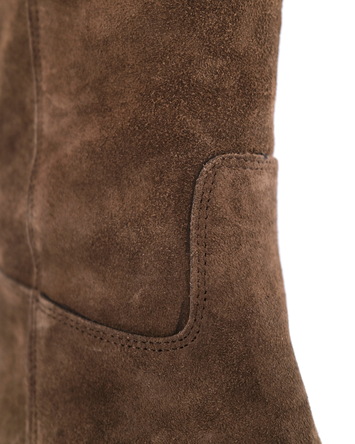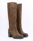 Stivale dal carattere sportivo con gambale dritto, comodo tacco e suola in gomma .Modello che da stile e slancia la silhouette anche per i look più street. Altezza tacco:8cm plateau 1,5 Altezza gambale: 38,5 cm Larghezza: 38 cm Composizione: Pelle camoscio Calzata: Regolare Fatto a mano in Italia |