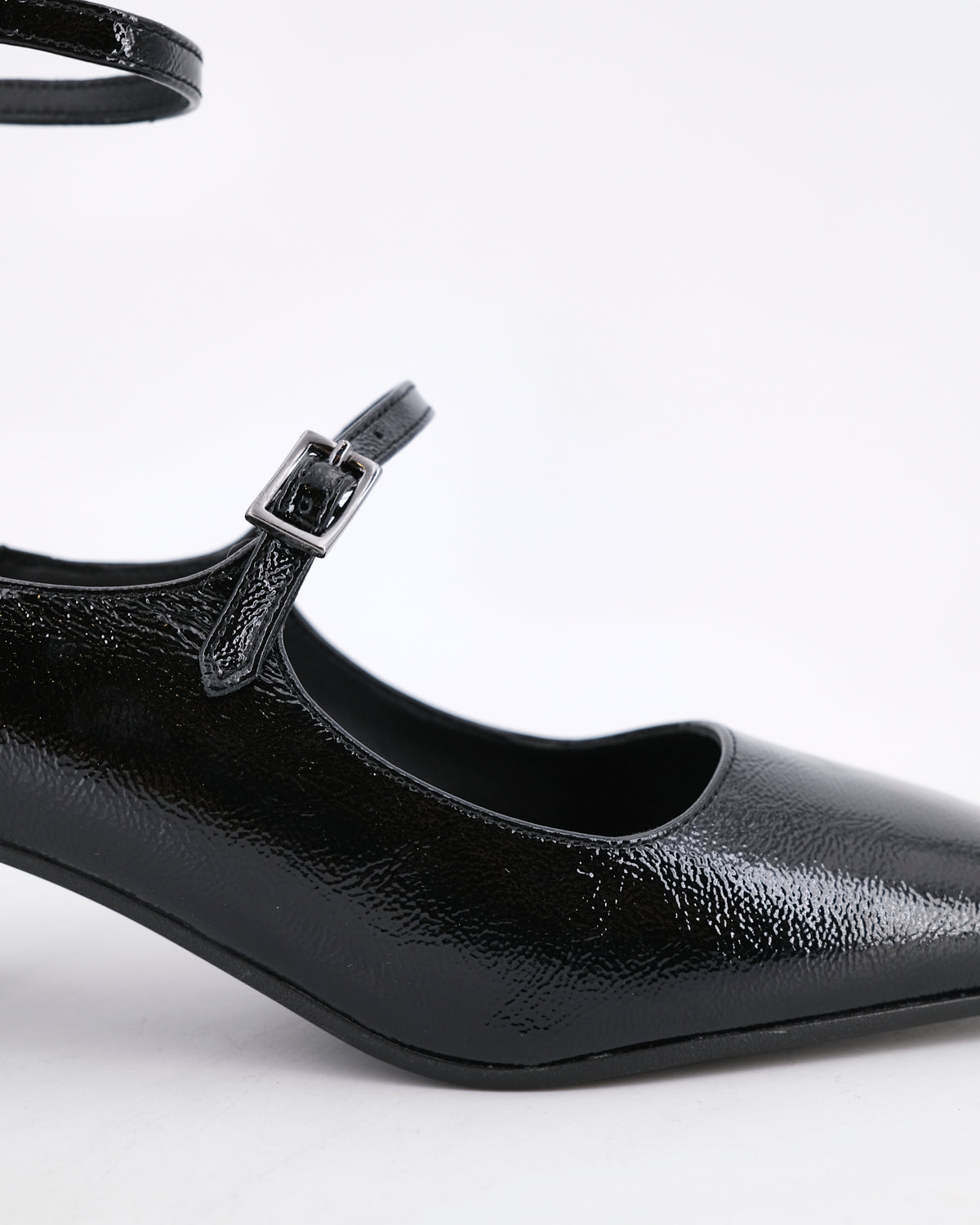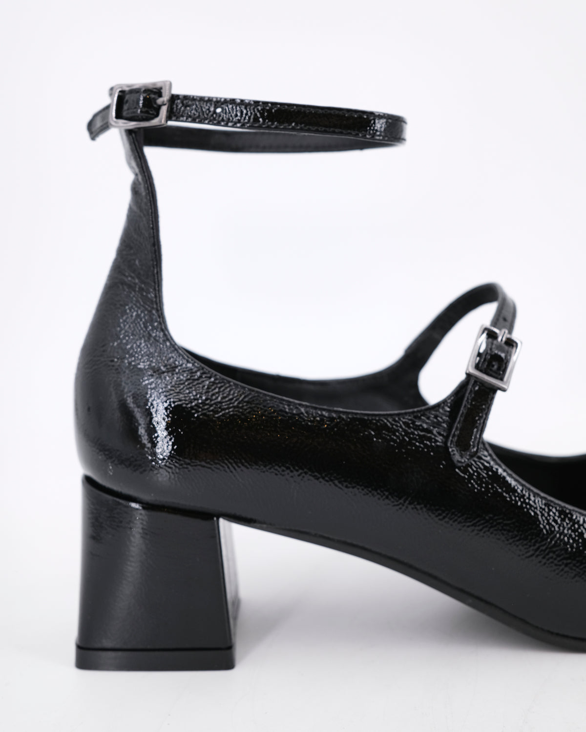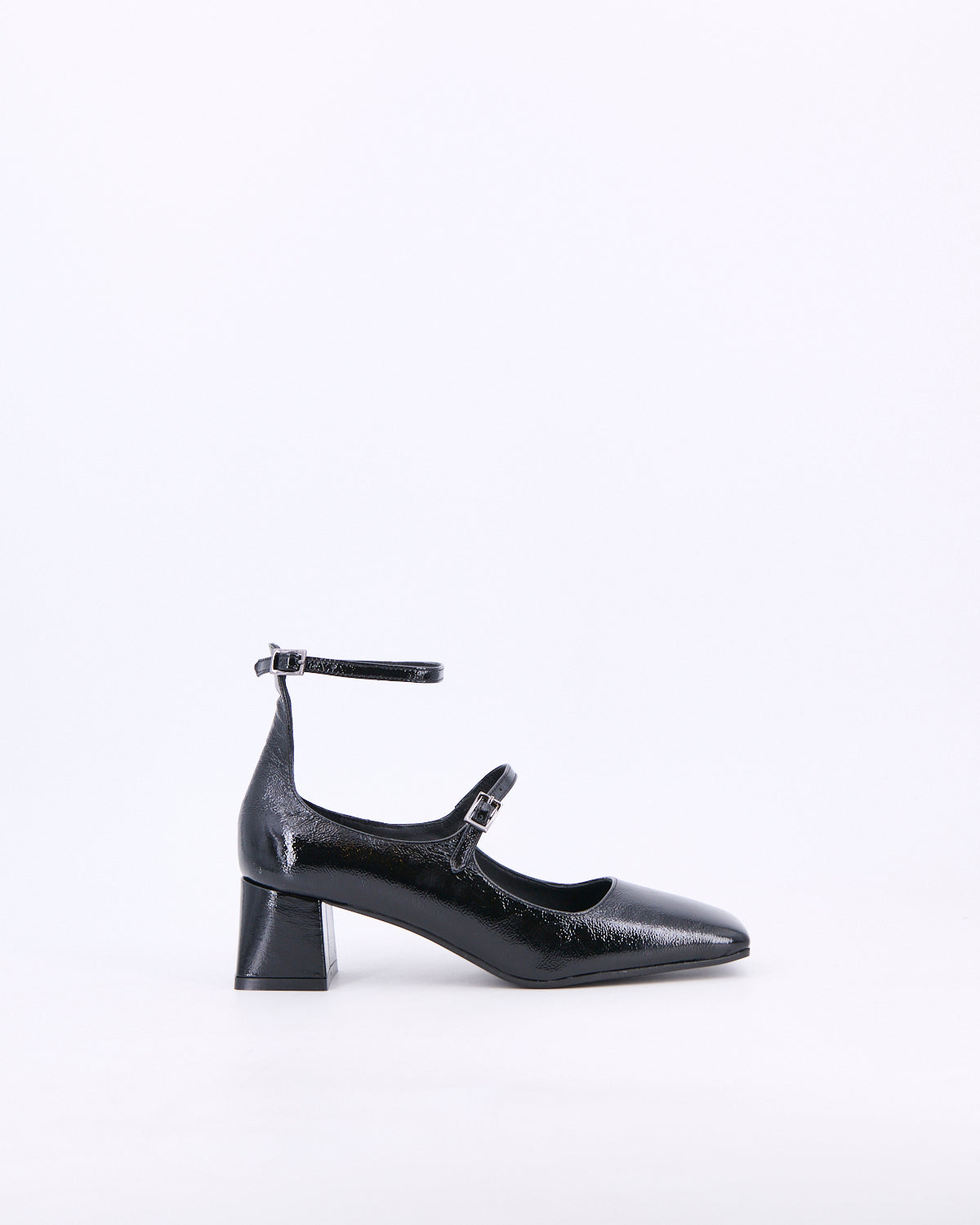 Di ispirazione retrò per questa scarpa dalla forma semiquadra con modello doppio cinturino realizzata ed impreziosita dal pellame shine per rendere ogni look accattivante e moderno. Altezza tacco: 5cm Composizione: Pelle effetto lucido Calzata: Regolare Fatto a mano in Italia |