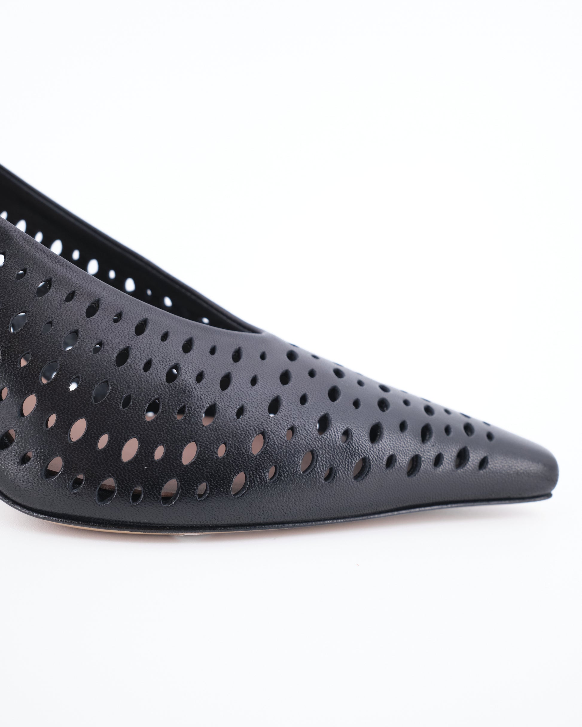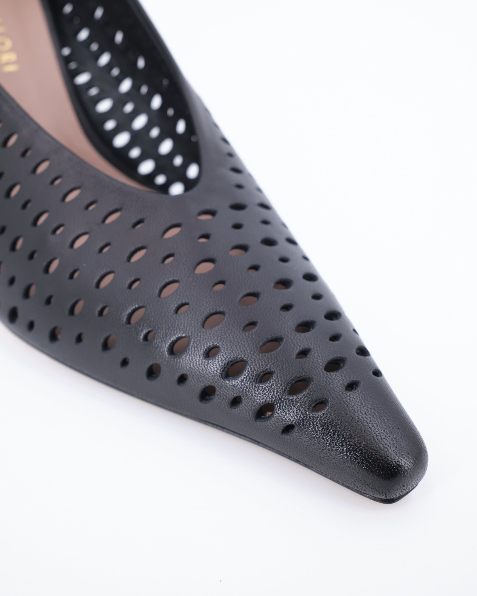 Un décolleté a punta in morbida nappa traforata, un modello versatile di chiara ispirazione anni '90. La silhouette femminile è impreziosita dalla lavorazione artigianale, un equilibrio perfetto tra eleganza e comfort pensato per valorizzare i tuoi look più formali e casual. Composizione: Pelle Suola: Cuoio Calzata: Regolare Fatto a mano in Italia |