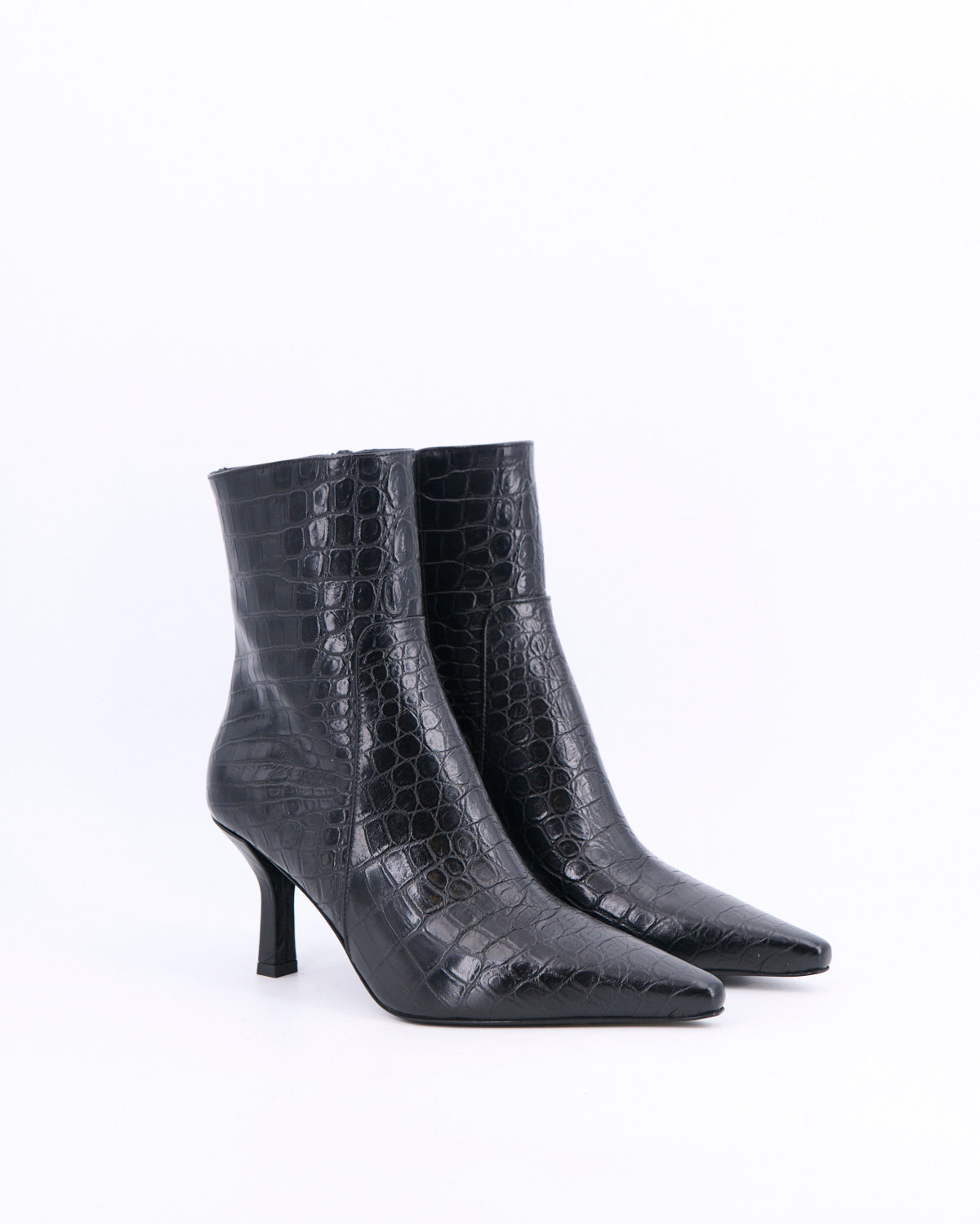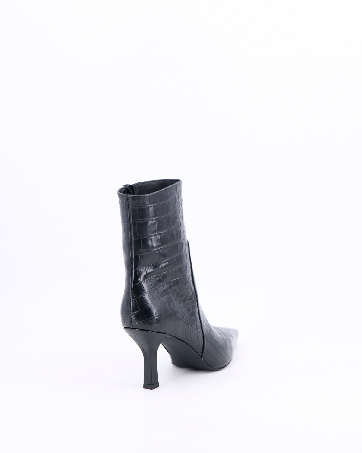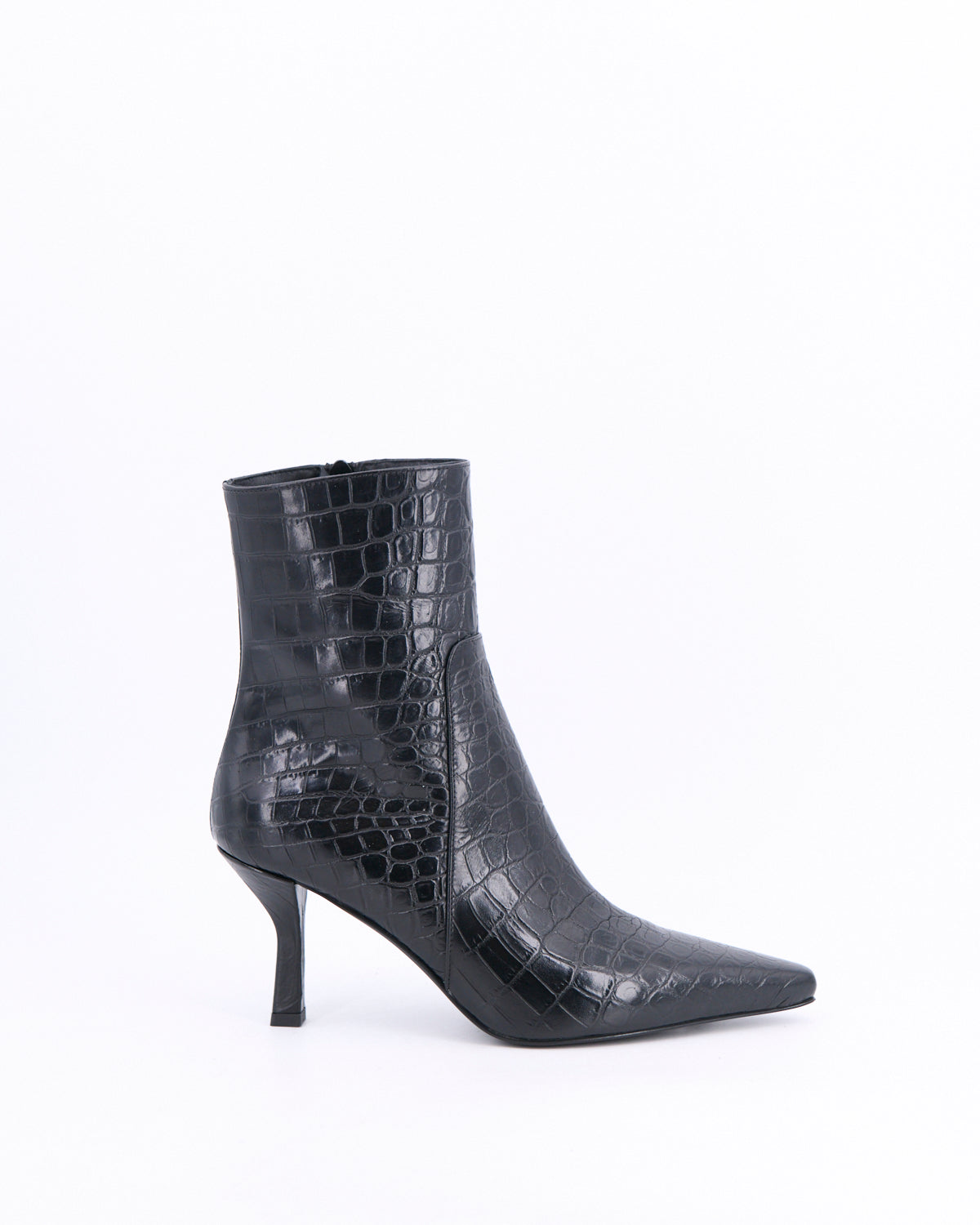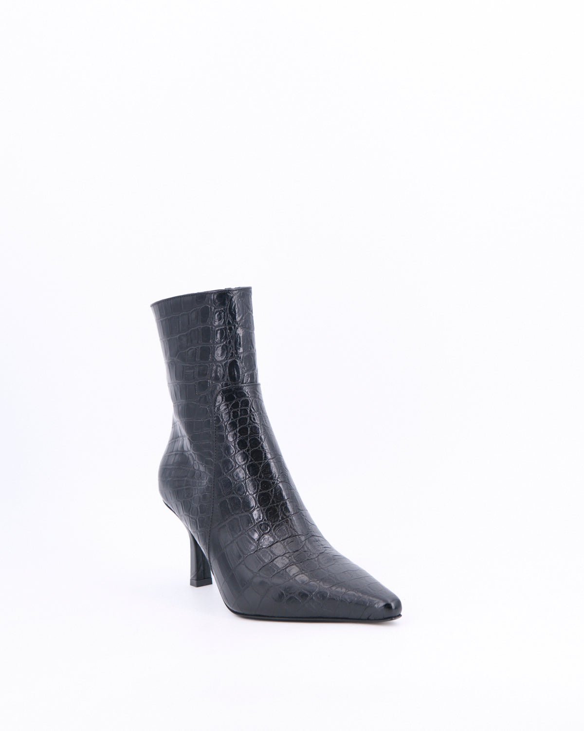 Design essenziale e raffinato  per questo stivaletto che unisce linee pulite e dettagli moderni la punta slanciata ed il tacco stilizzato donano carattere e personalità ad ogni outfit .