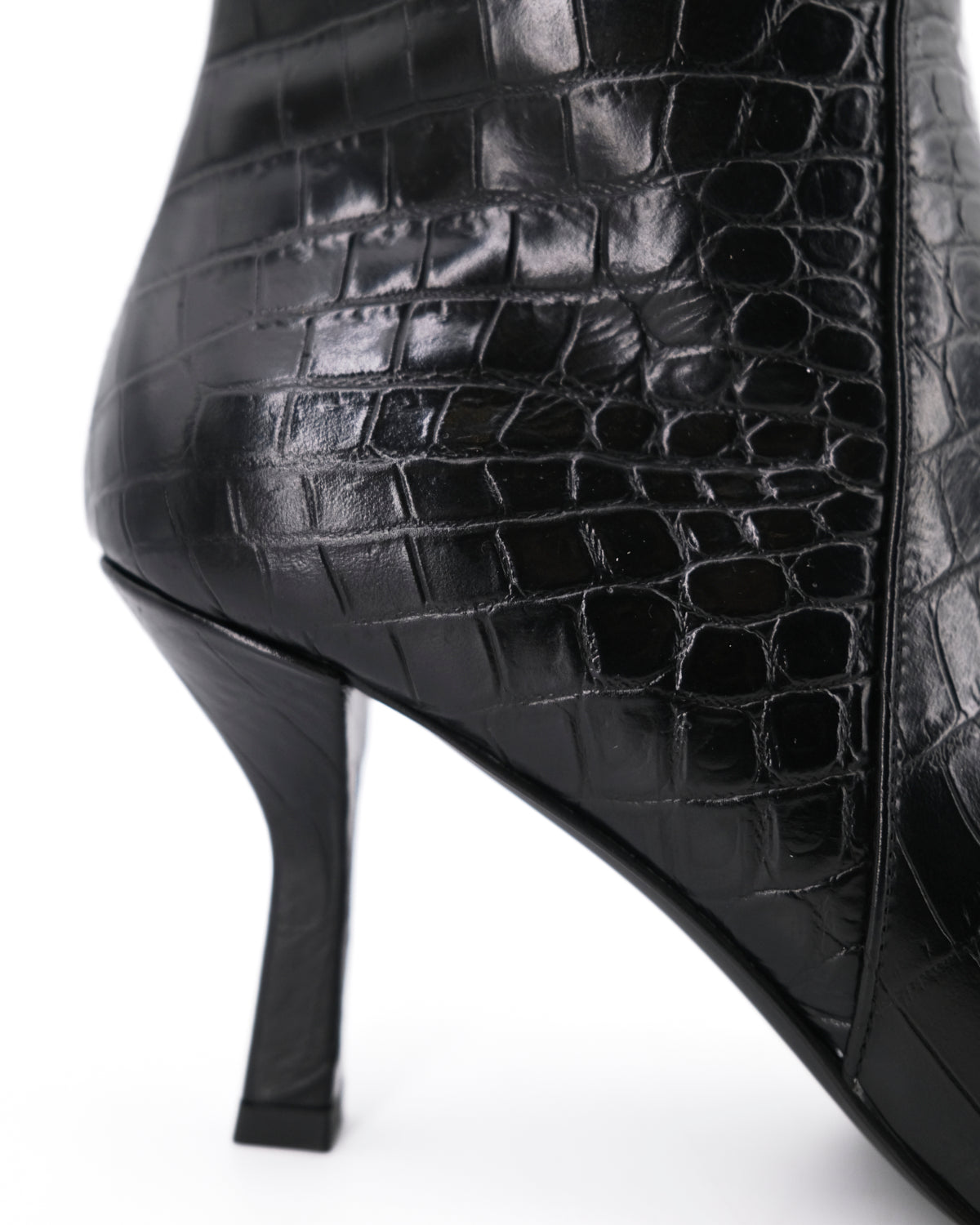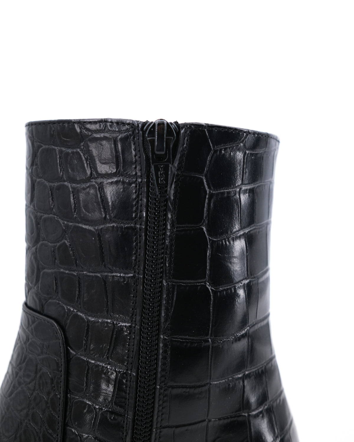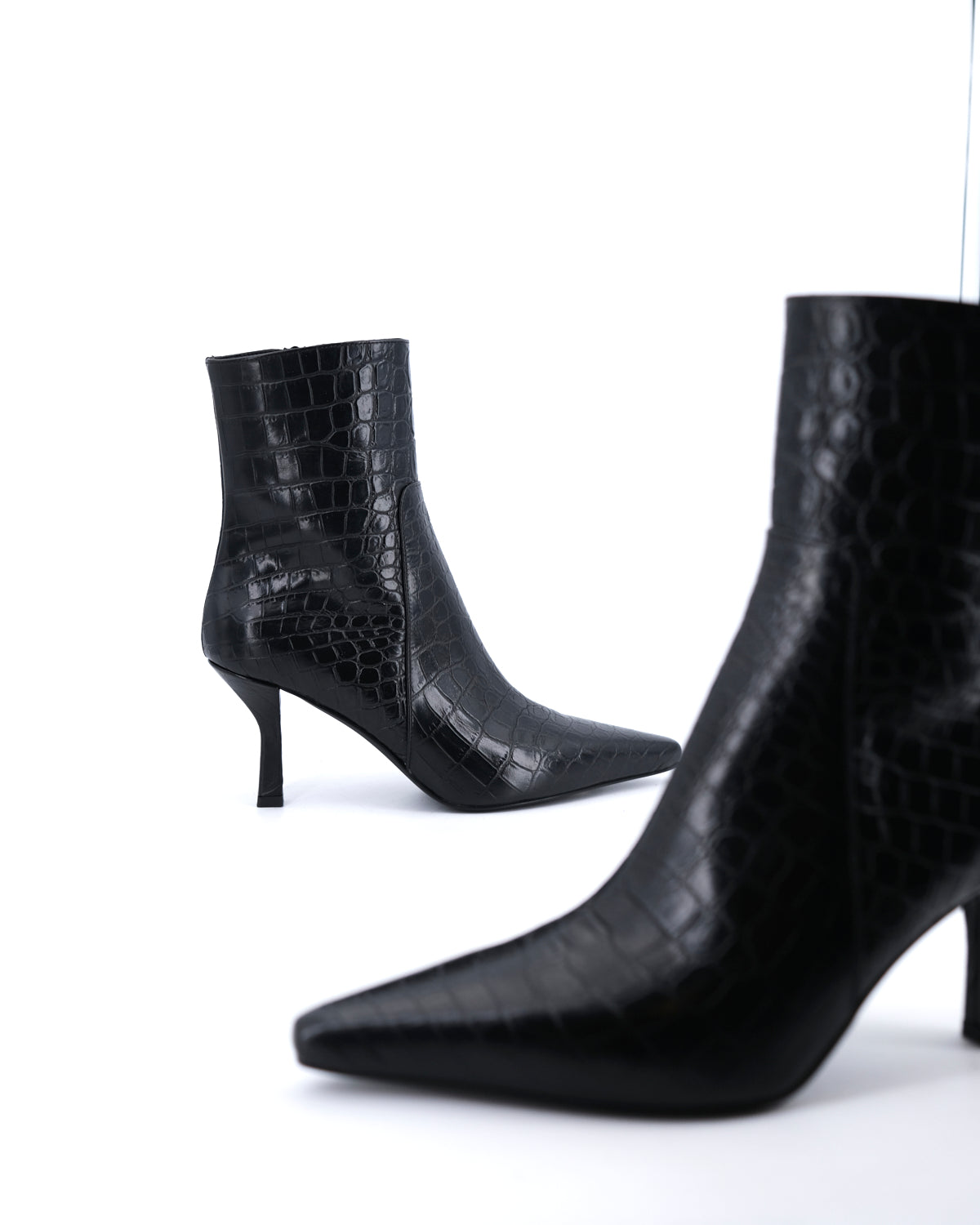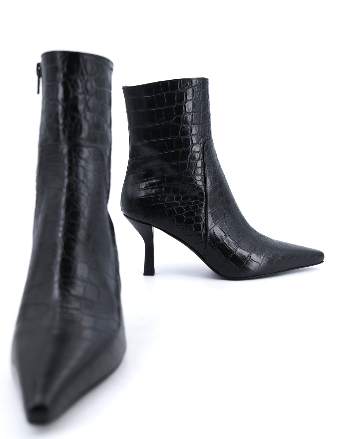 Design essenziale e raffinato  per questo stivaletto che unisce linee pulite e dettagli moderni la punta slanciata ed il tacco stilizzato donano carattere e personalità ad ogni outfit .