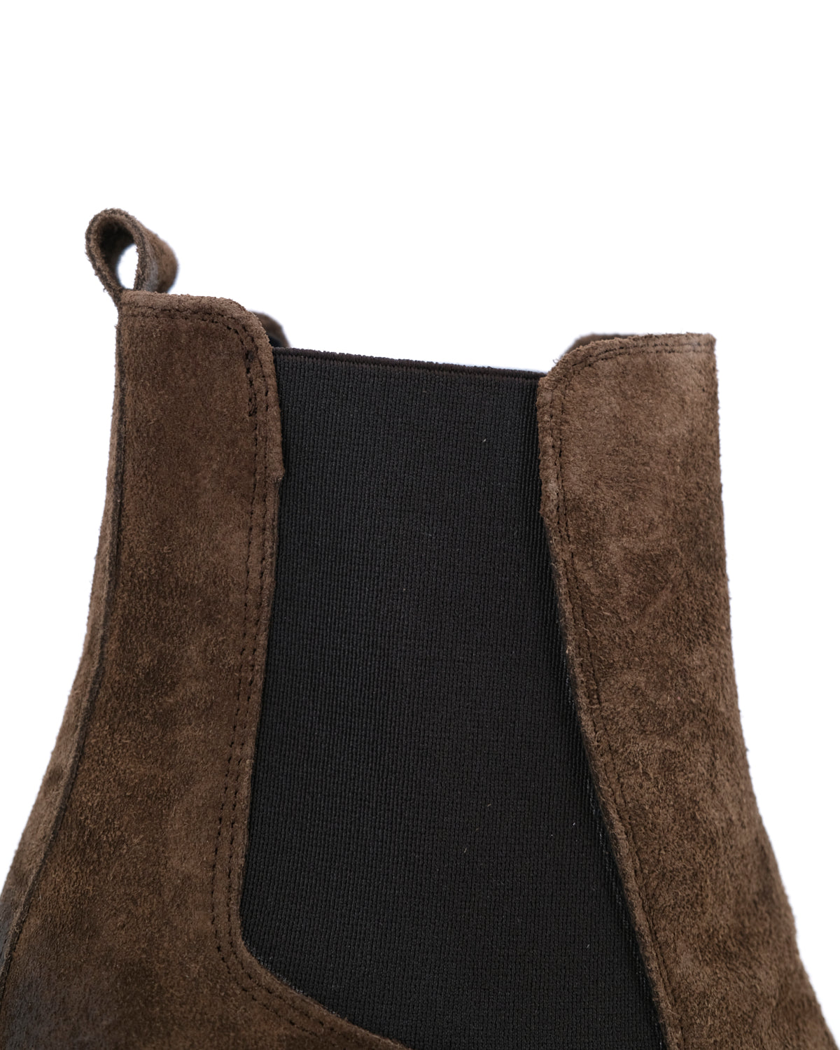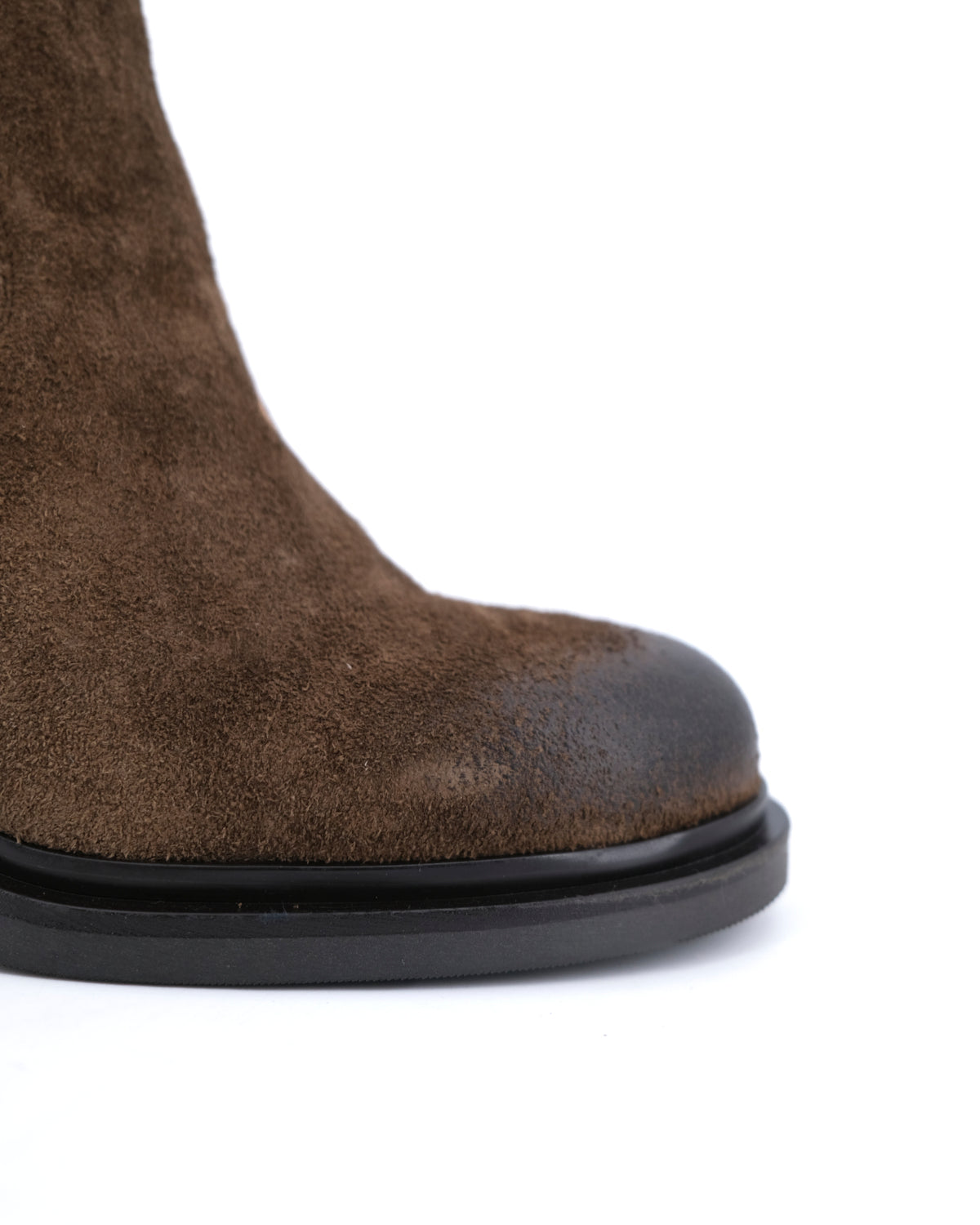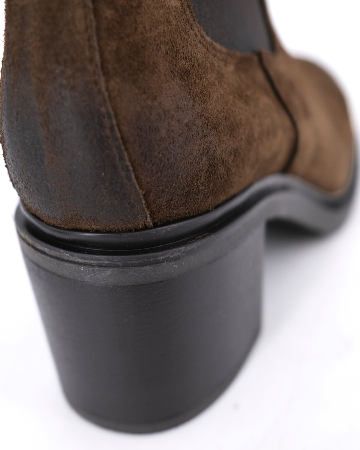 Dalle linee grintose e di ispirazione urban per questo stivaletto con tacco comodo e fondo in gomma pensato per essere indossato in ogni momento della giornata. Altezza tacco:8cm Altezza gambale: 15cm Composizione: Pelle camoscio Calzata:Regolare Fatto a mano in Italia. |