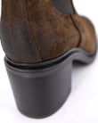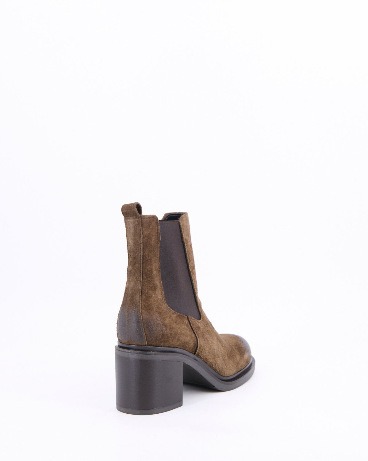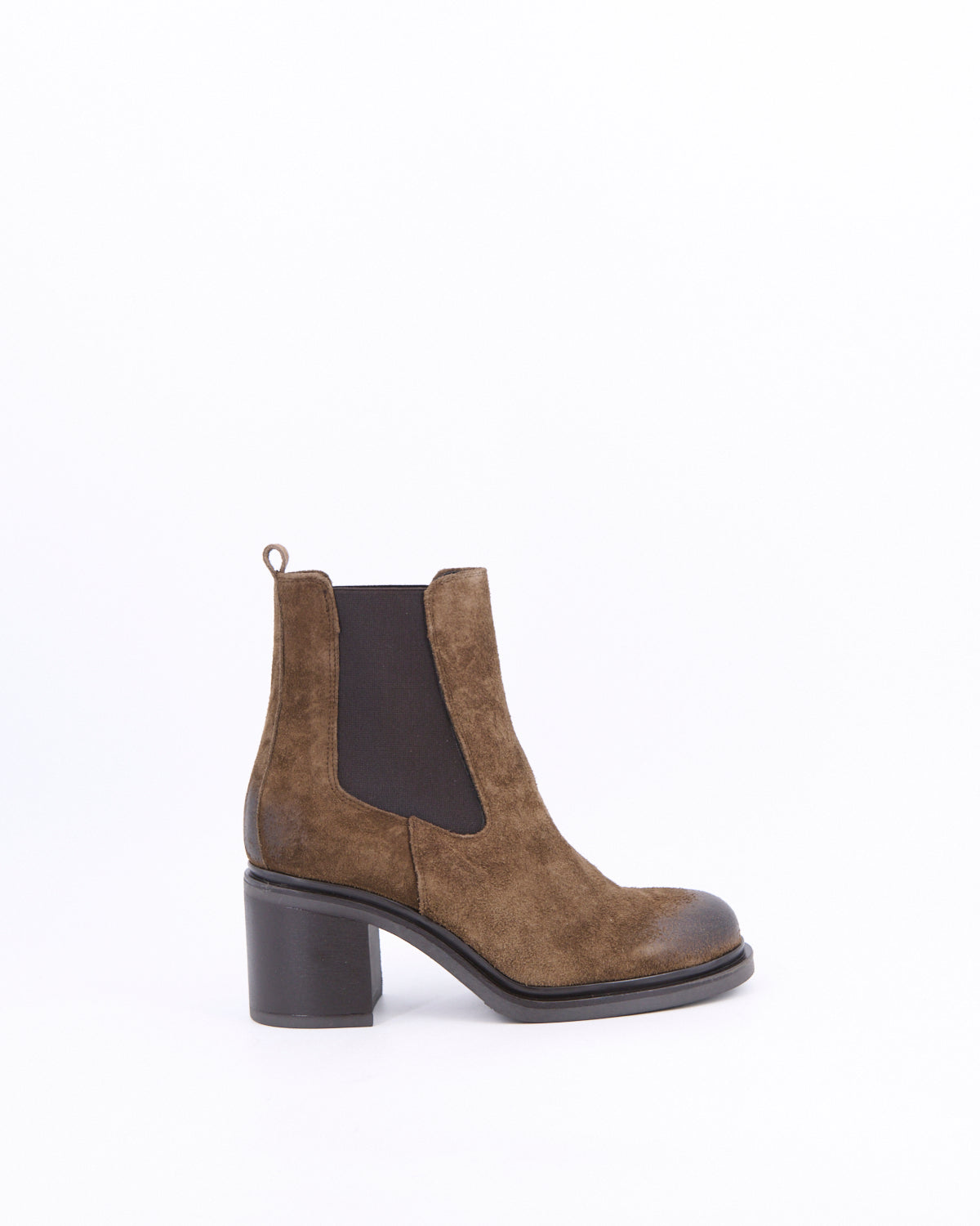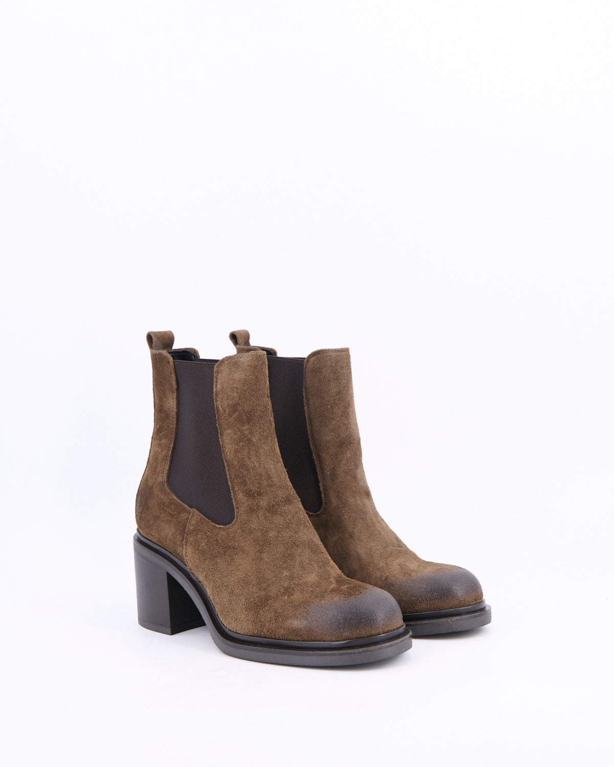 Dalle linee grintose e di ispirazione urban per questo stivaletto con tacco comodo e fondo in gomma pensato per essere indossato in ogni momento della giornata. Altezza tacco:8cm Altezza gambale: 15cm Composizione: Pelle camoscio Calzata:Regolare Fatto a mano in Italia. |