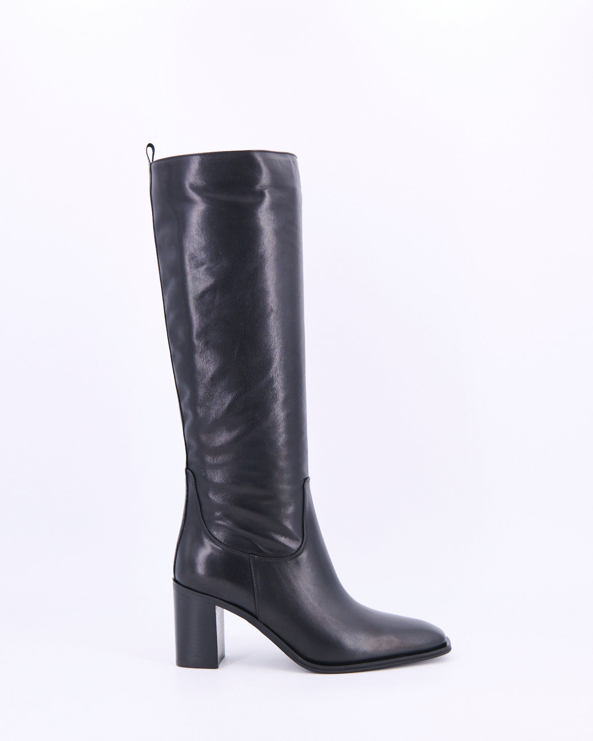 Dalle linee rigorose e stilose per questo stivale di ispirazione anni 80 realizzato in morbida pelle con zip interna e comodo tacco pensato per essere indossato in ogni momento della giornata.