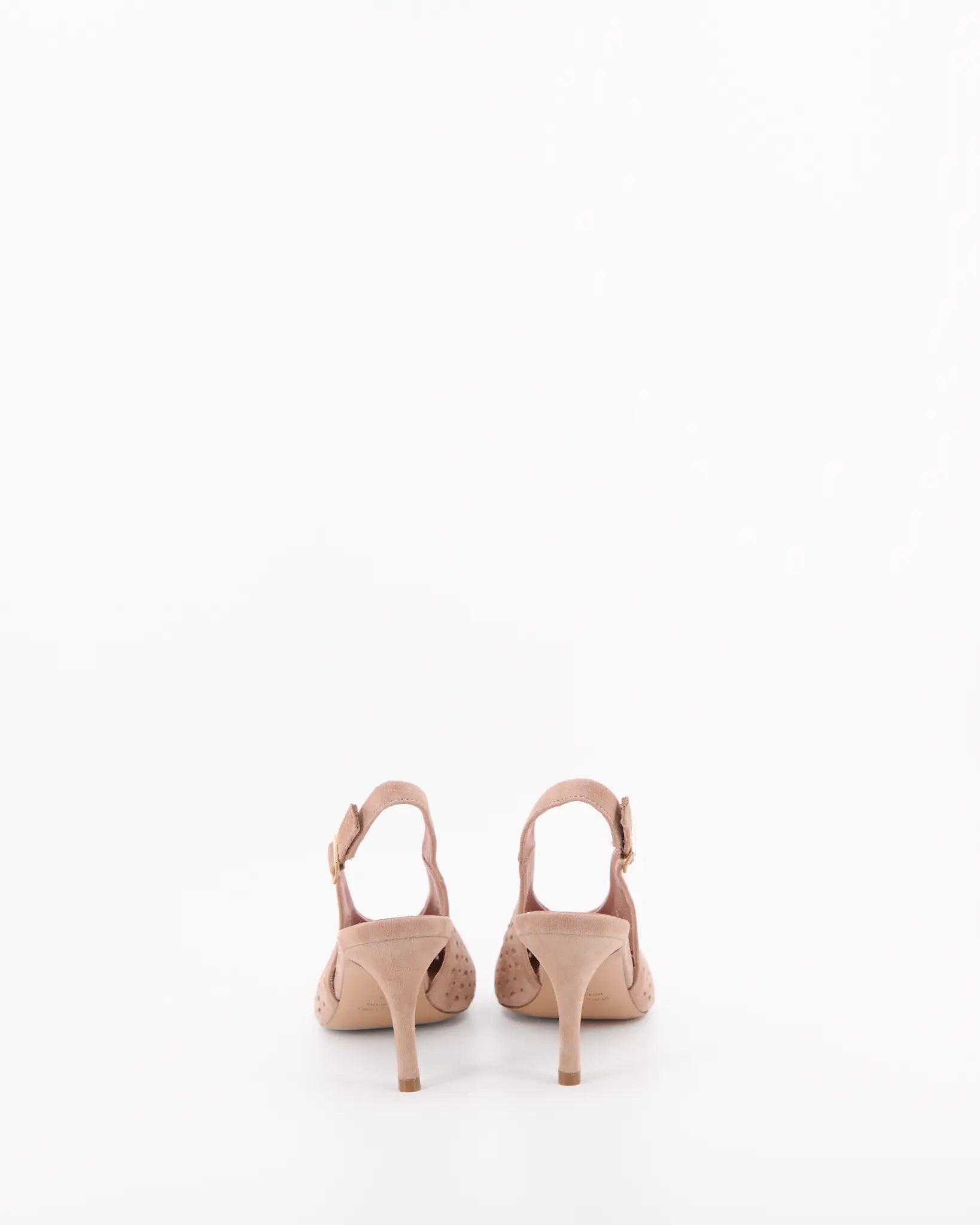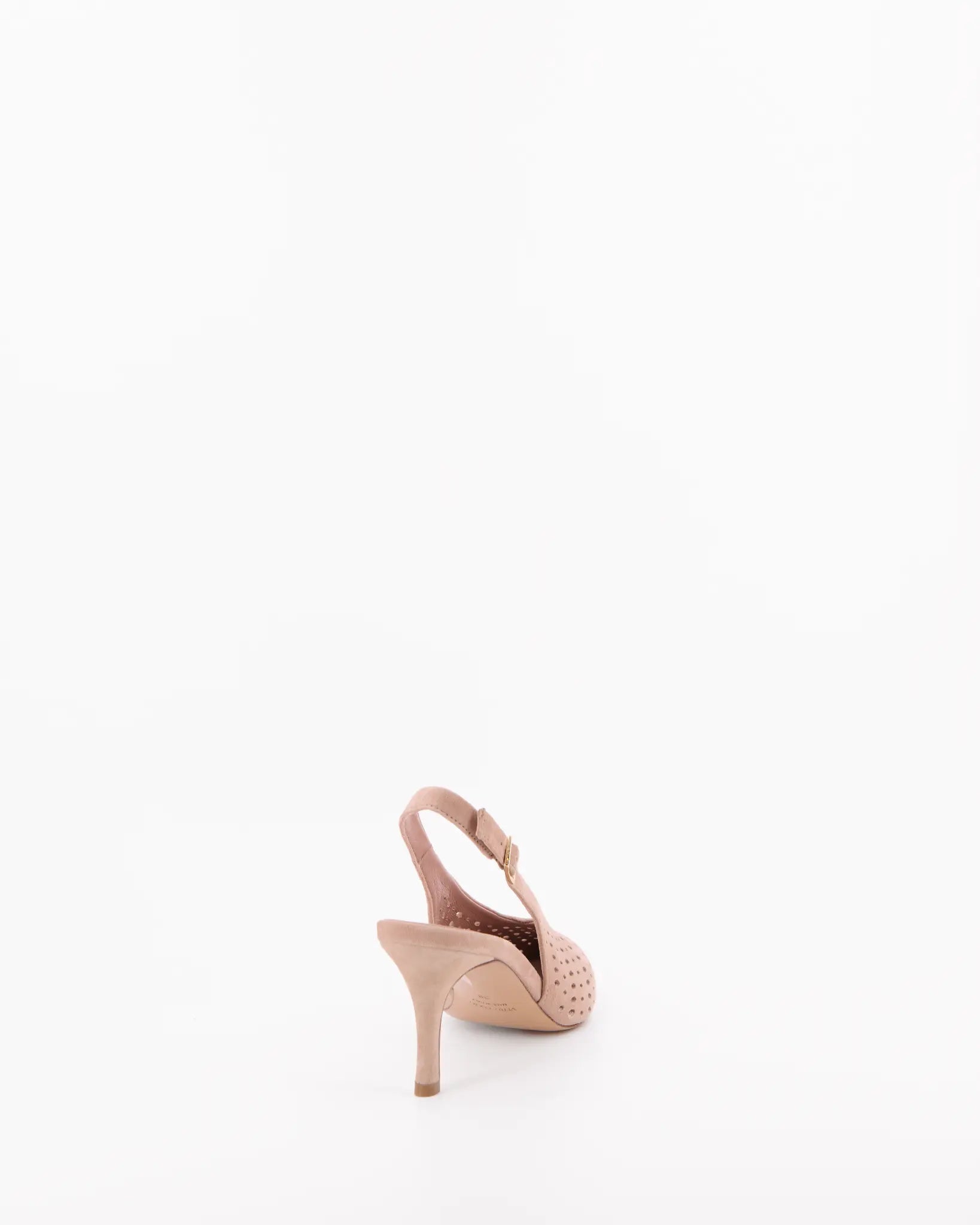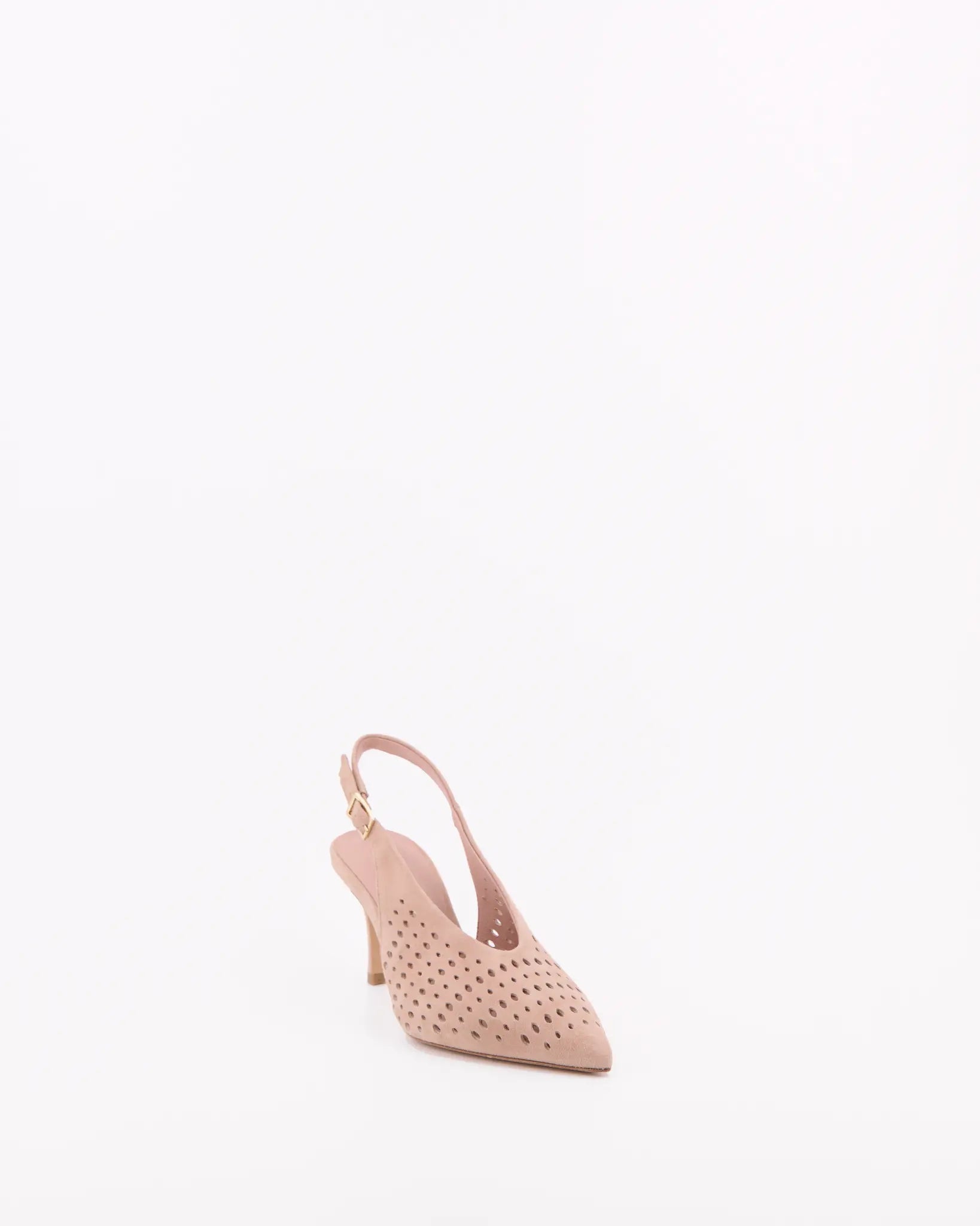 Una slingback donna in morbido camoscio traforato, un modello versatile e senza tempo pensato per slanciare la tua silhouette. Il design armonioso dello scollo avvolge il piede con eleganza, rendendo questa scarpa ideale per occasioni formali, il lavoro o serate speciali.