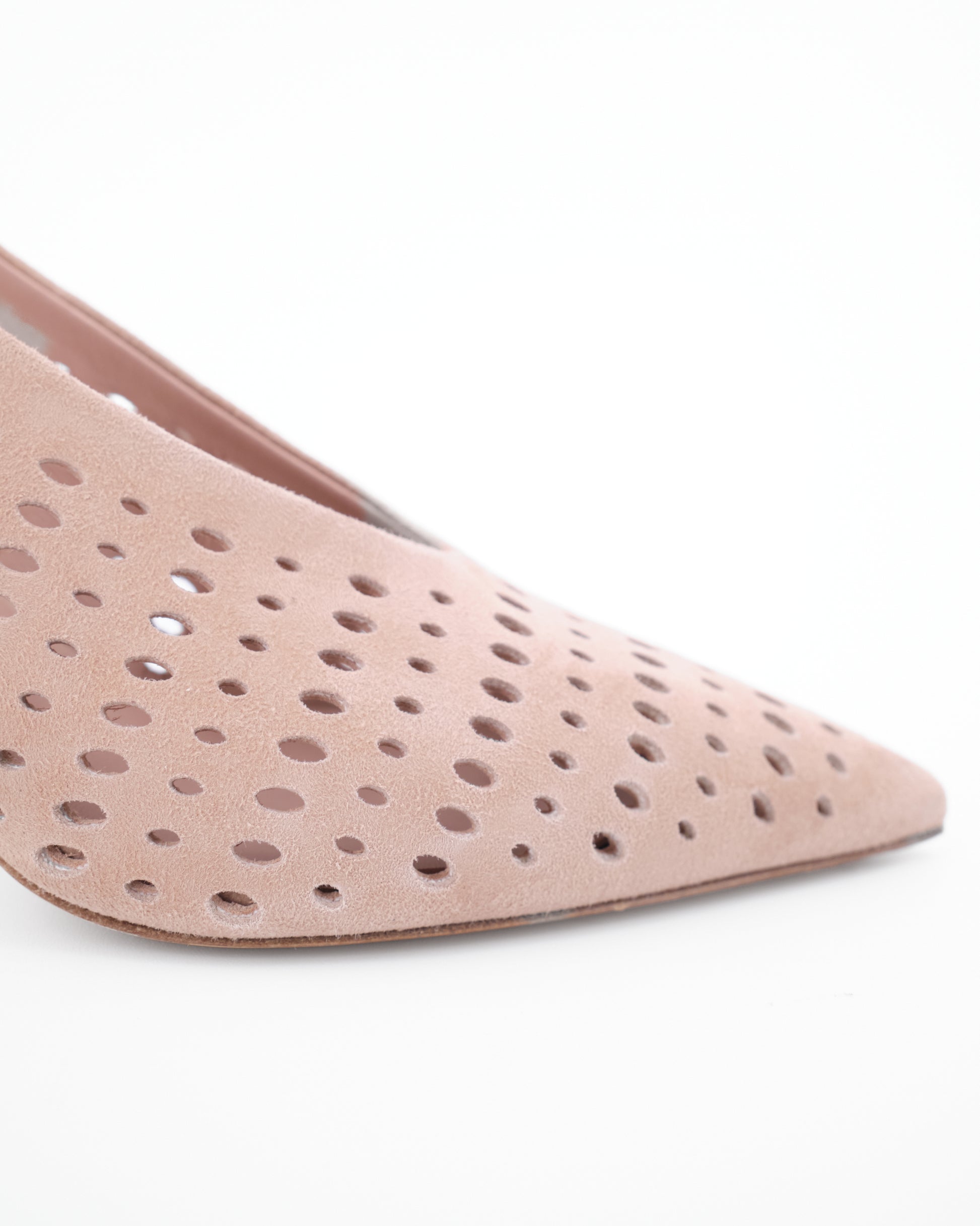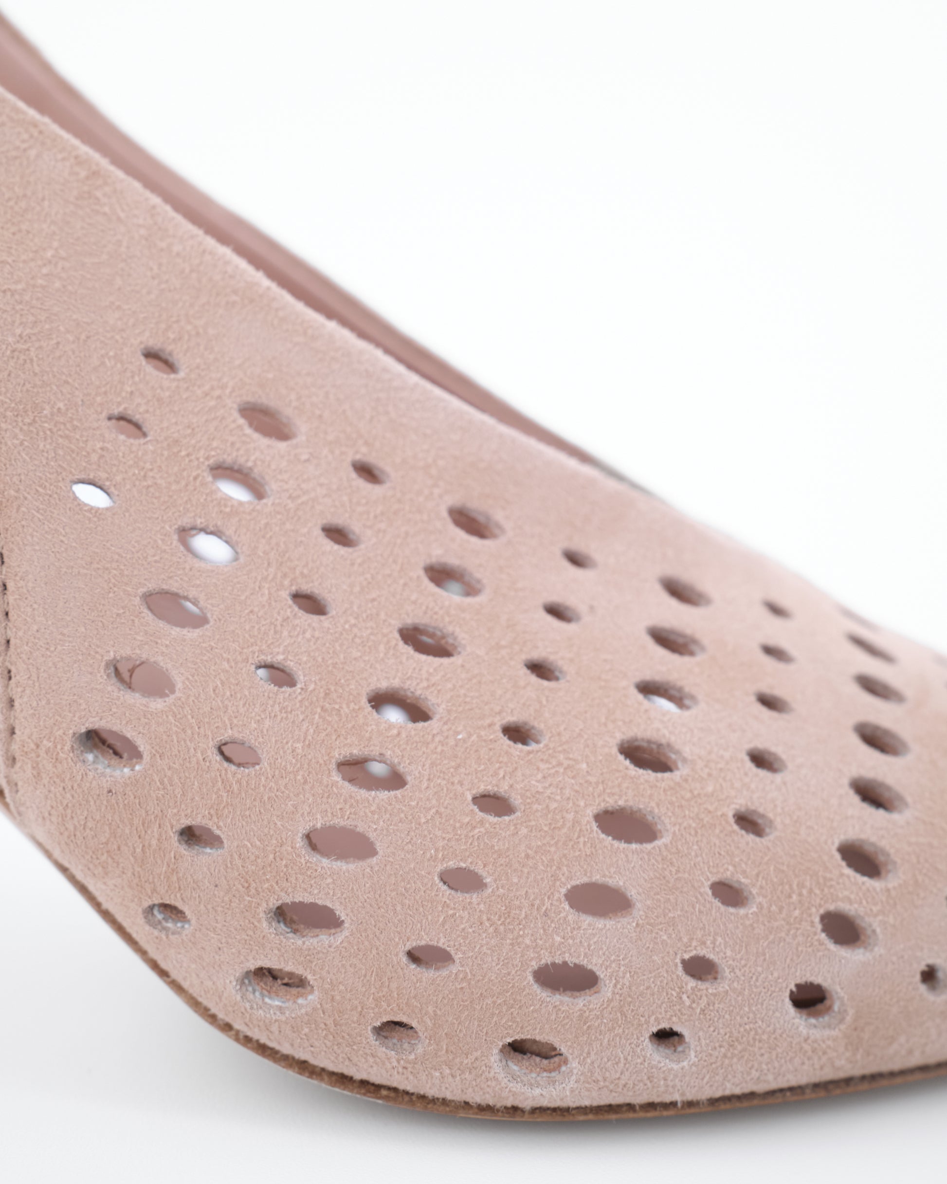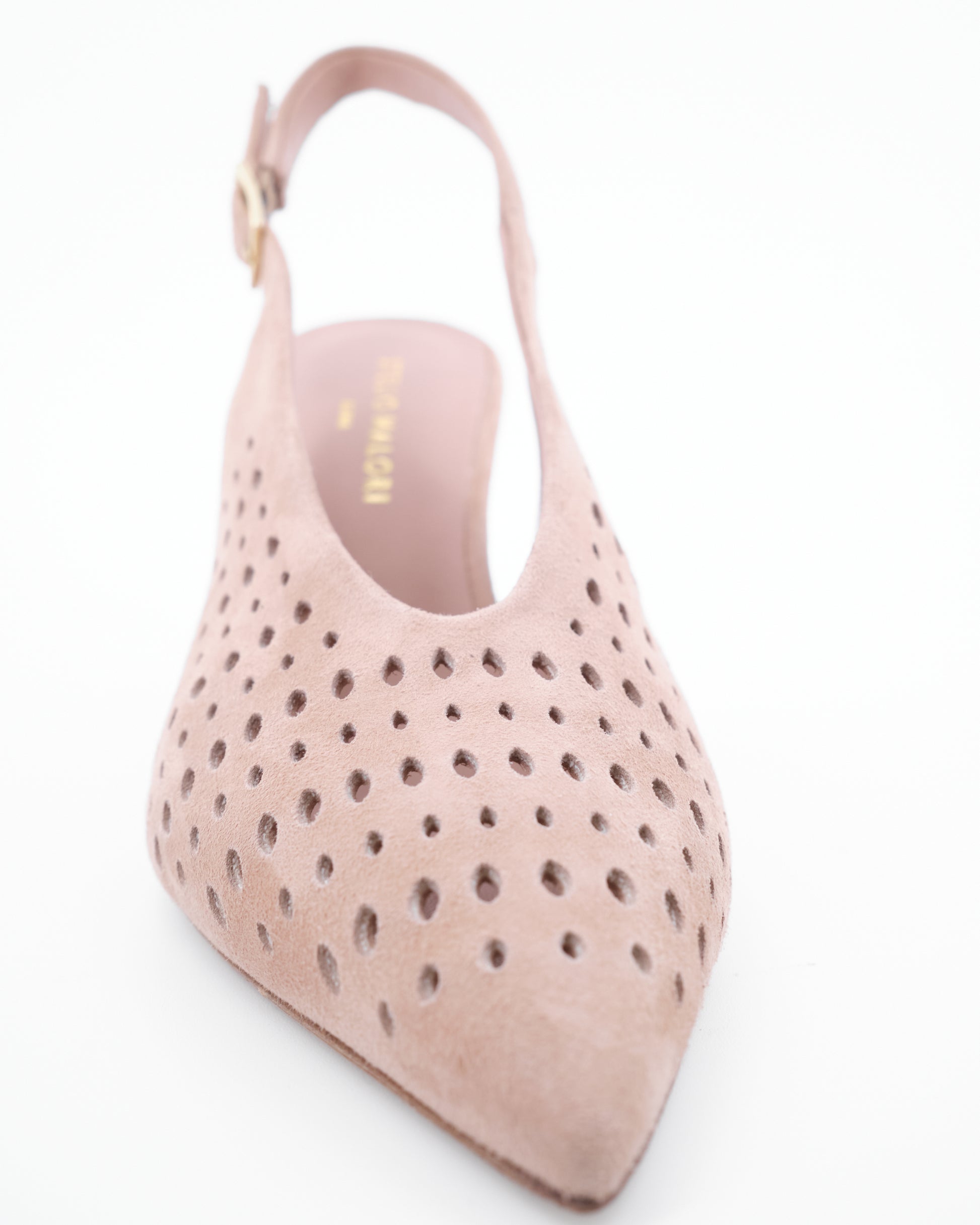 Una slingback donna in morbido camoscio traforato, un modello versatile e senza tempo pensato per slanciare la tua silhouette. Il design armonioso dello scollo avvolge il piede con eleganza, rendendo questa scarpa ideale per occasioni formali, il lavoro o serate speciali.